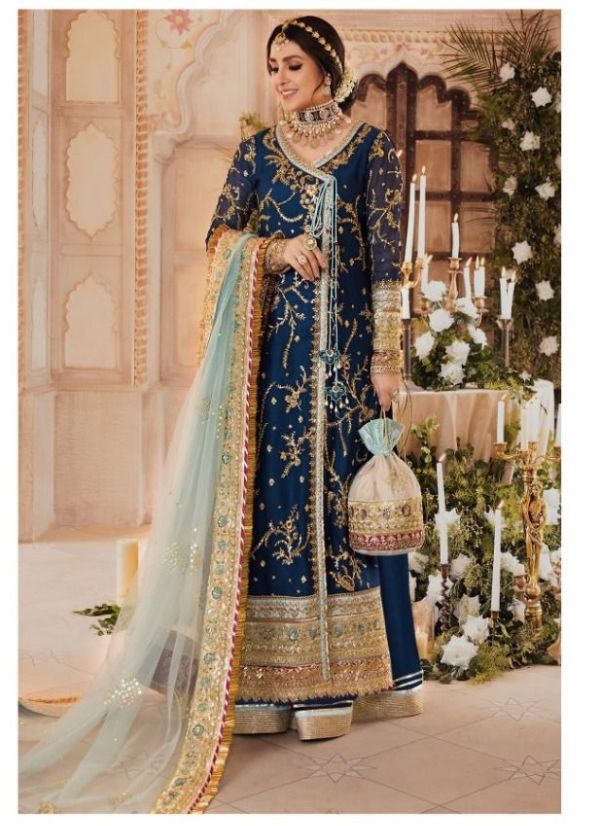 Latest Designer pakistani suit Collection. Exclusive with Foil & Thread Embroidery Work gives a Fashionable Look, High sensed style and luxury makes you ready for envious glazes and very rich & Royal in the Party, Function, Event etc.