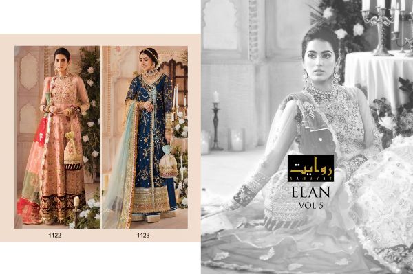 Khayyira Presents Elan Vol 5 1122,1123 Series Faux Georgette With Embroidery Pakistani Suits Collection