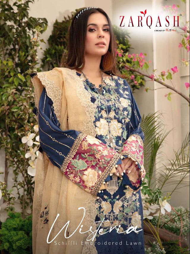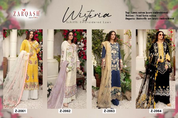 Khayyira Presents Wisteria Z-2061-z2064 Series Lawn Cotton Heavy Embroidery Pakistani Suit Collection#1551