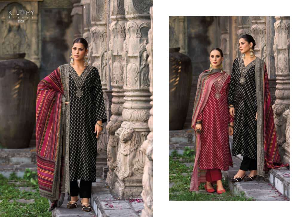 | Catalogue: | KILORY TRENDS TARANNUM PURE VISCOSE PASHMINA SUIT WITH BEAD WORK |