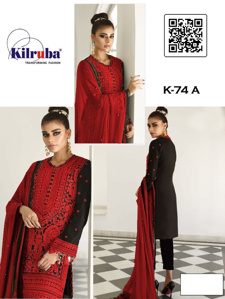 Kilruba K- 74 Colors Georgette With Beautiful & Heavy Chain Stitched Embroidery Work All Over Pakistani Suit Collection