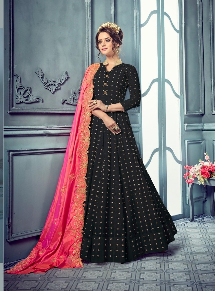 Kilruba Presents D 1008 Black Pure Cotton With Beautiful Neck Pattarn Kali Suit Collection