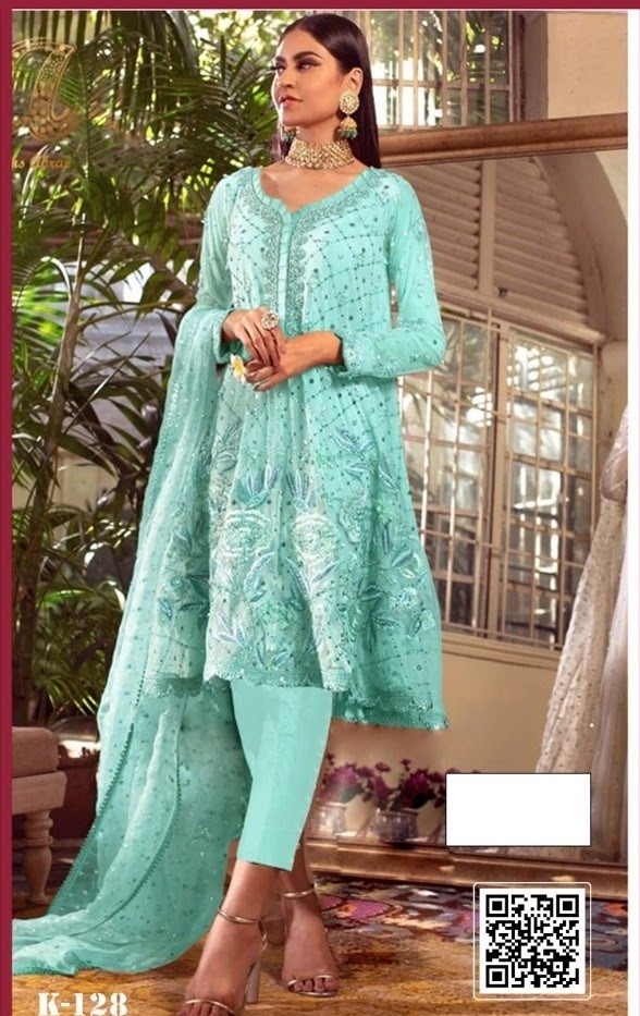 Latest Designer pakistani Collection. Exclusive with Foil & Thread Embroidery Work gives a Fashionable Look, High sensed style and luxury makes you ready for envious glazes and very rich & Royal in the Party, Function, Event etc.