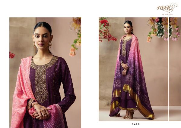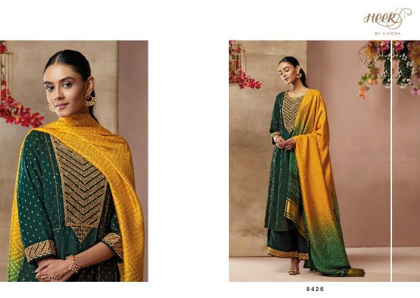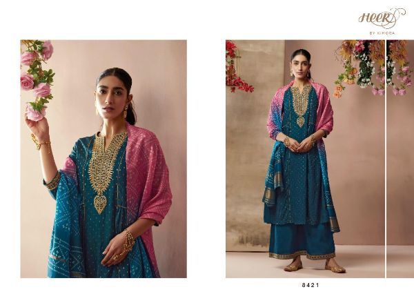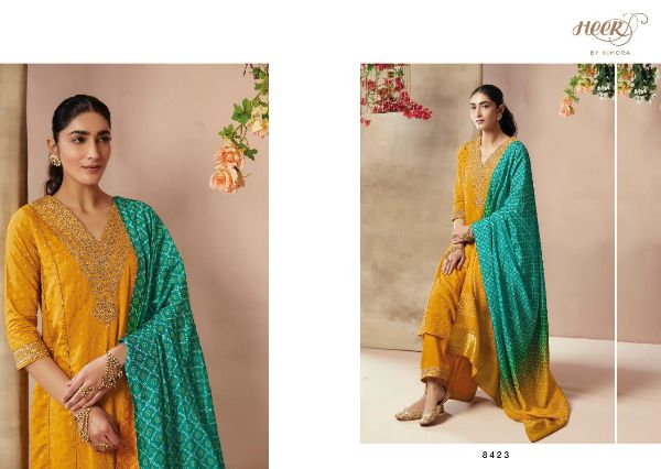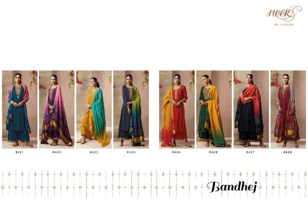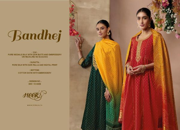 Kimora Heer Presents Bandhej 8421 - 8428 Series Pure Silk With Zari Butti And Embroidery Work Salwar Kameez Collection