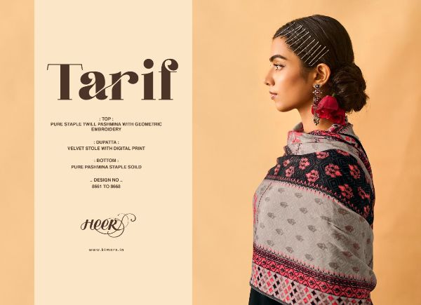 Kimora Presents Tarif 8631-8638 Series Pure Pashmina With Embroidery Work Fancy Salwar Suit Collection