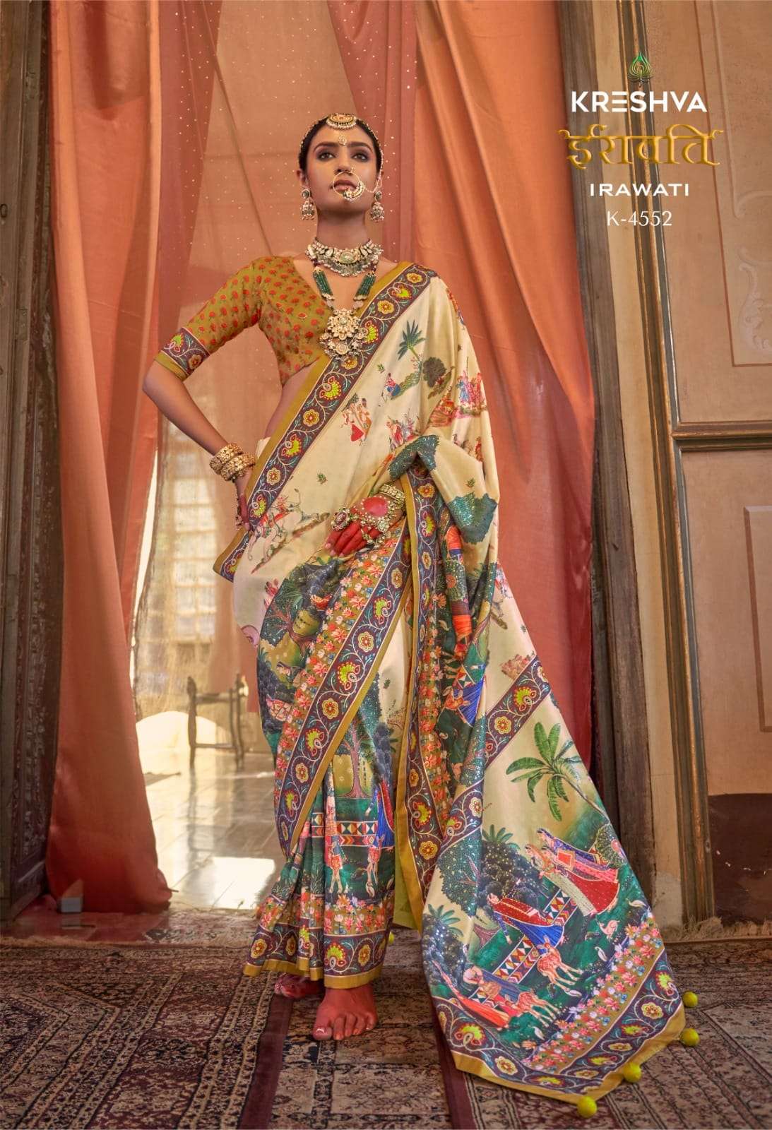 | Catalogue: | Kreshva IRAWATI Pure P V Tissue Silk LUXURY PRINT WITH GLORY FINISH Weaving Saree collection |