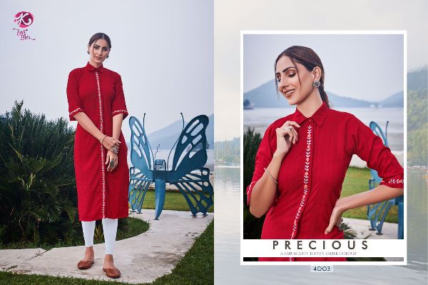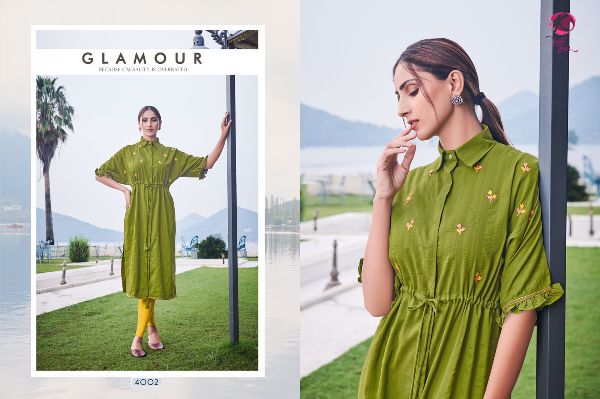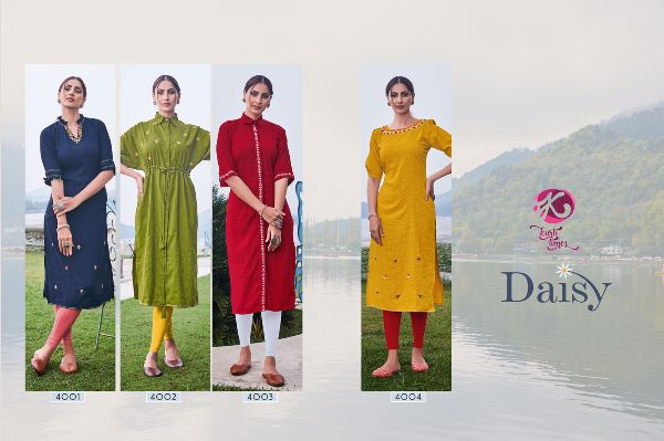 Kurti Times Presents Daisy 4001-4004 Series Poly Viscose Fancy Embroidery Work Kurtis Collection