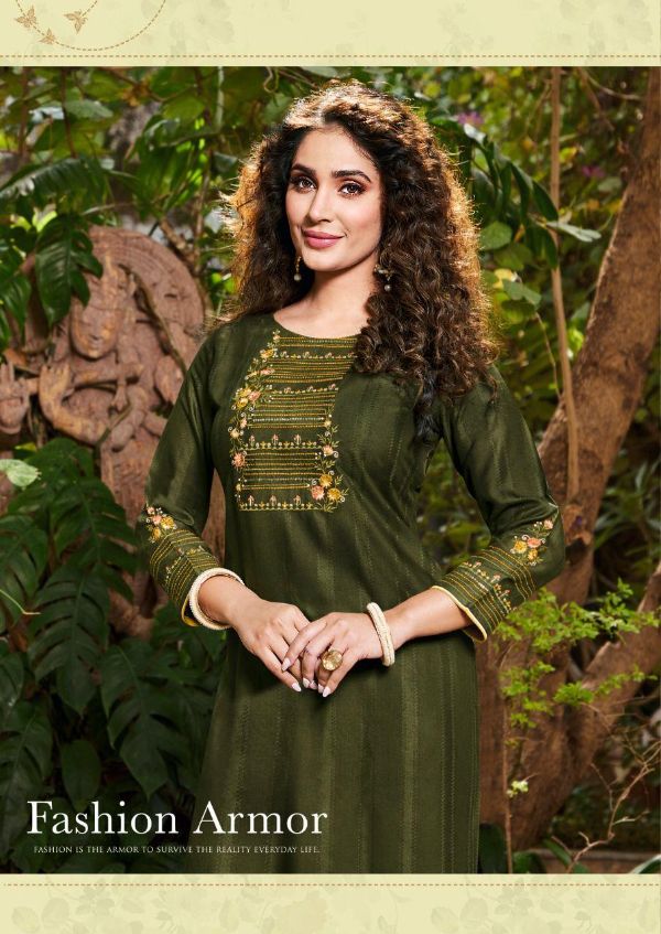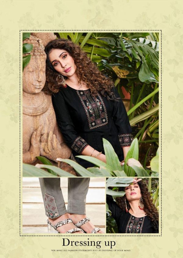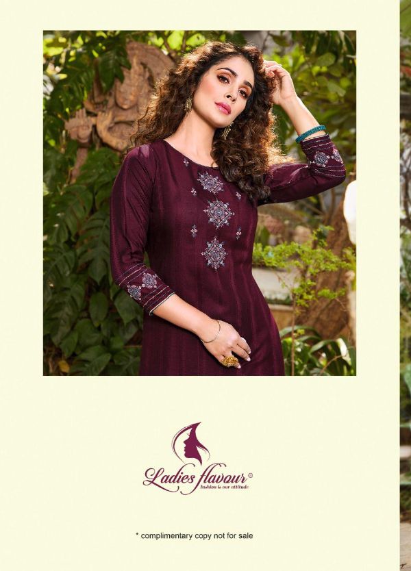 Ladies Flavour Presents Saanvi Vol 3 4001-4006 Series Pure Viscose Rayon Weaving Dobby With Heavy Sequence Embroidery Work Kurti With Pent Collection