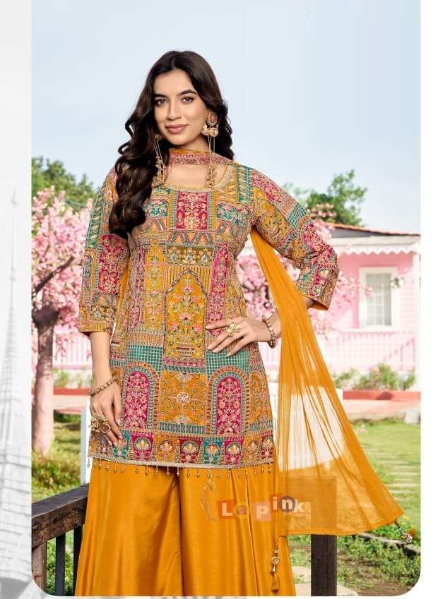 | Catalogue: | lapink 18156 Ready to Wear Premium Silk Embroidered Yellow Sharara Suit |