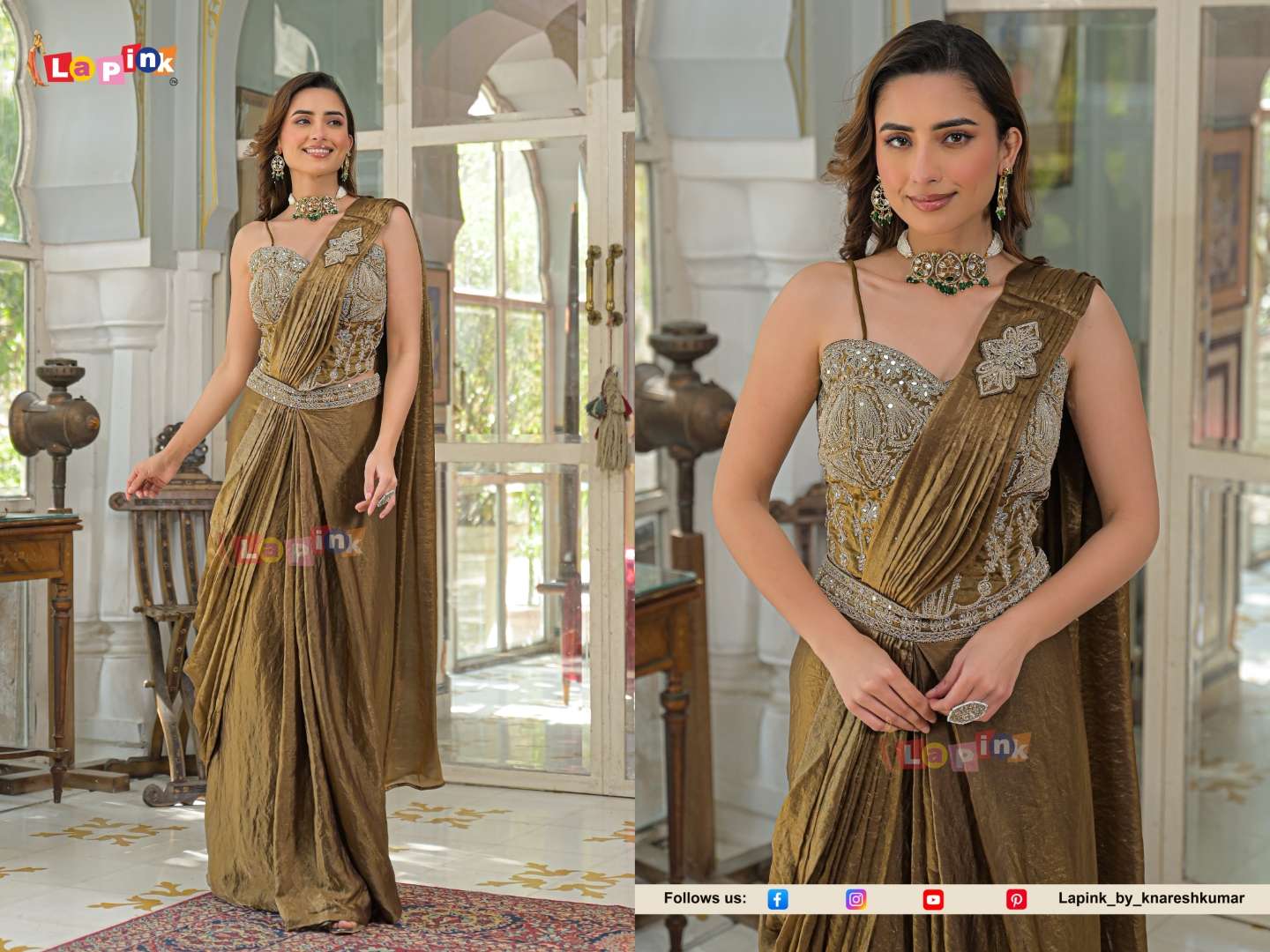 | Catalogue: | Lapink 20649 Stone and Mirror work Embroidered Fendi fabric Pre Draped Saree |