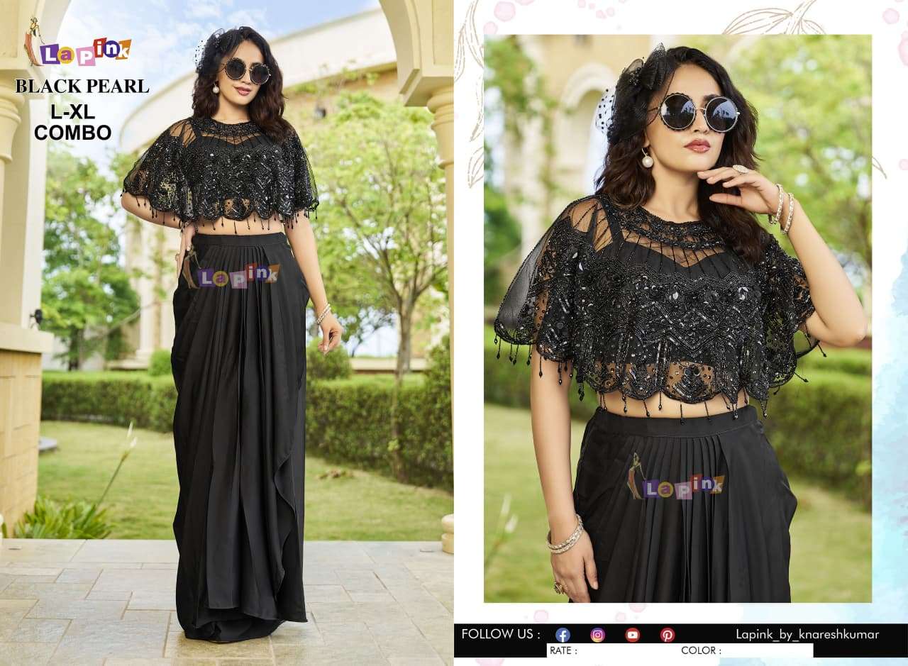 | Catalogue: | Lapink Chinon Designer Crop Top with Drape Skirt & Paucha |