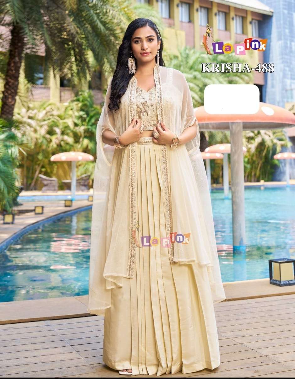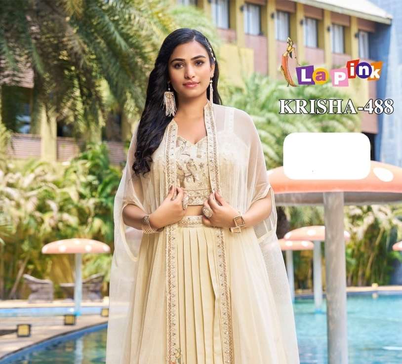 | Catalogue: | Lapink Krisha 488 Ready to Wear Premium Shimmer Lehenga with Long Shrug |