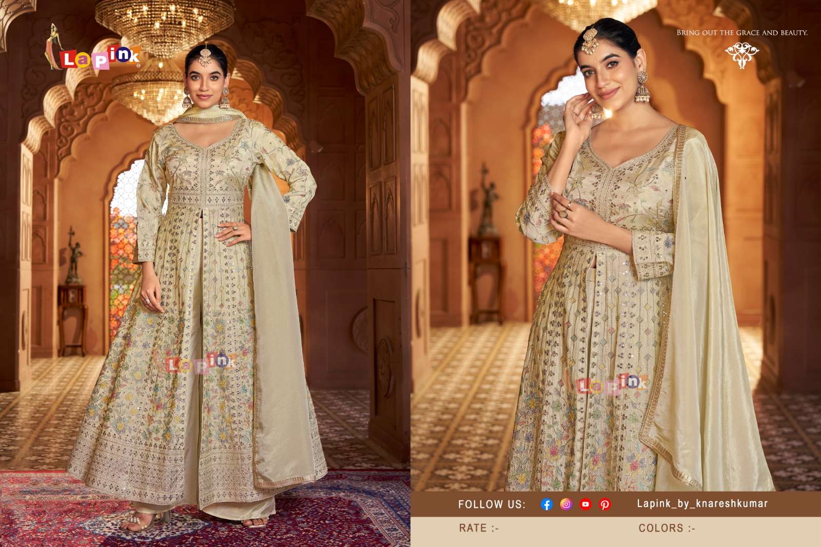 | Catalogue: | Lapink Shimmer Designer Centre Cut with Palazzo & Dupatta |