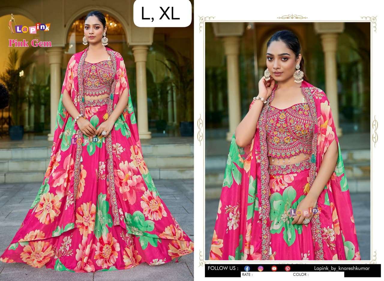 | Catalogue: | Lapink Silk Designer Printed Floral Lehenga Set with Cape |