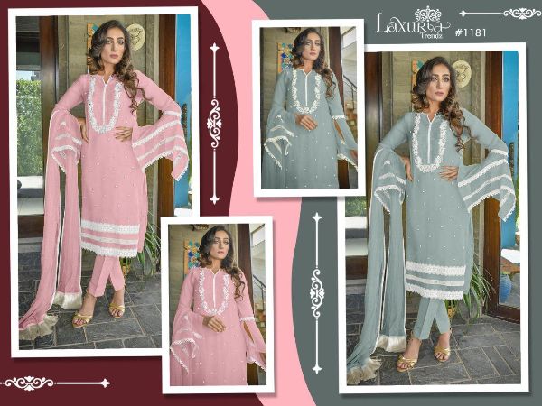 Laxuria Trendz D No 1181 Fox Georgette Top Pent With Dupatta Collection