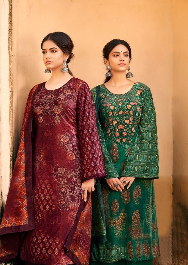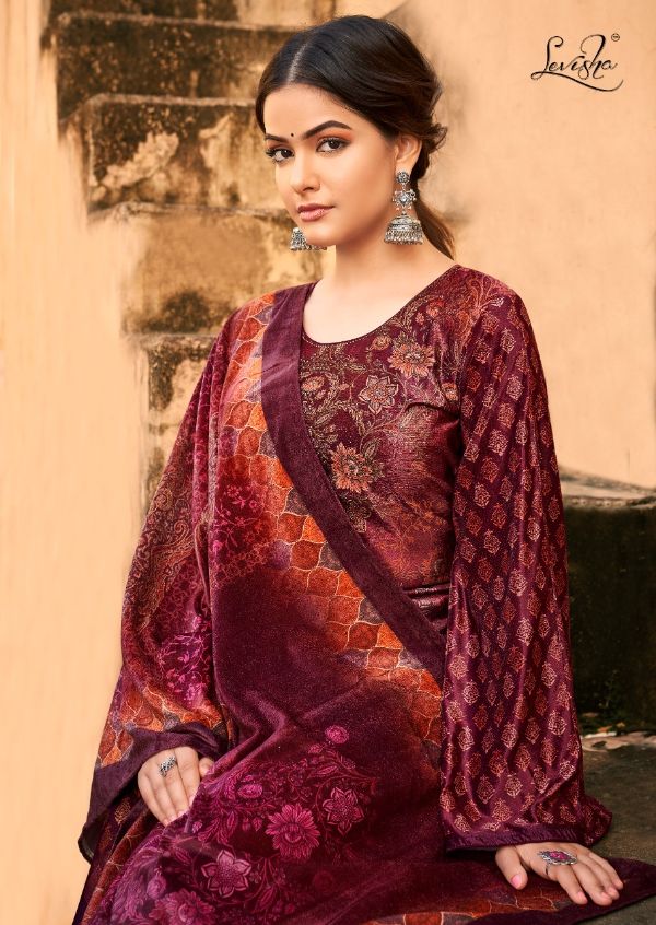 Levisha Presents Surbhi 1001 - 1006 Series Pure Velvet With Digital Print With Diamonds Fancy Salwar Suit Collection