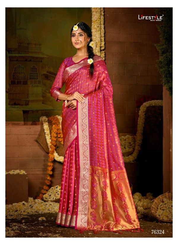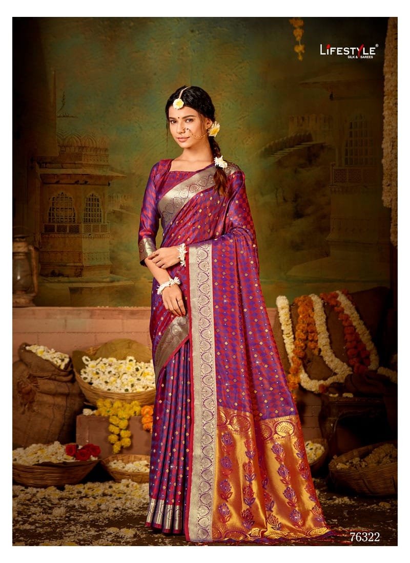 Lifestyle Presents Aayushi Vol-1 76321-76326 Series Silk With Rich Pallu Fancy Saree Collection