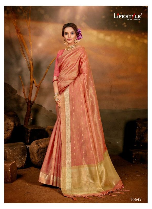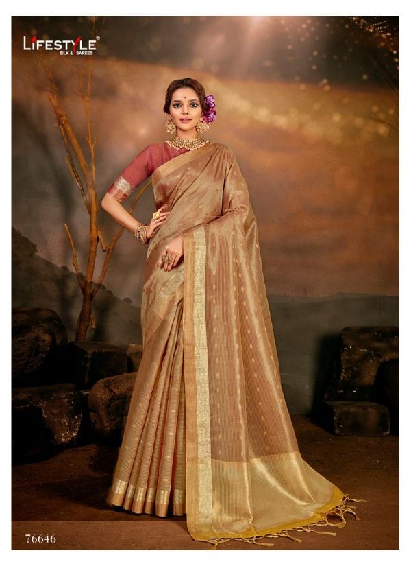 Catalogue: Lifestyle Presents Aroma Silk 76641 - 76646 Series Fancy Cotton Tishu Beautiful Designer Saree Collection