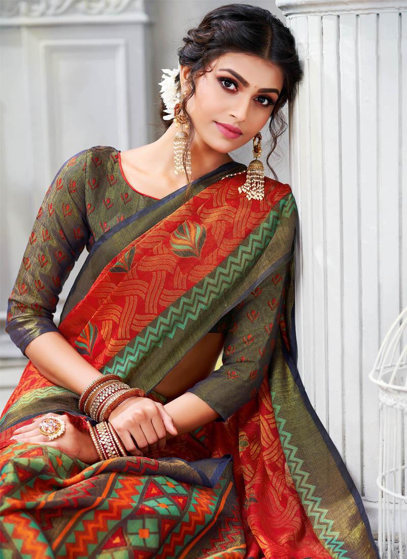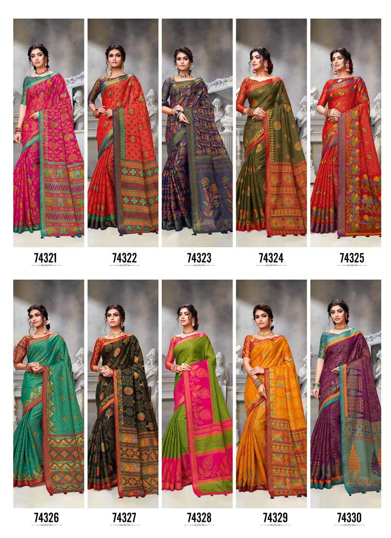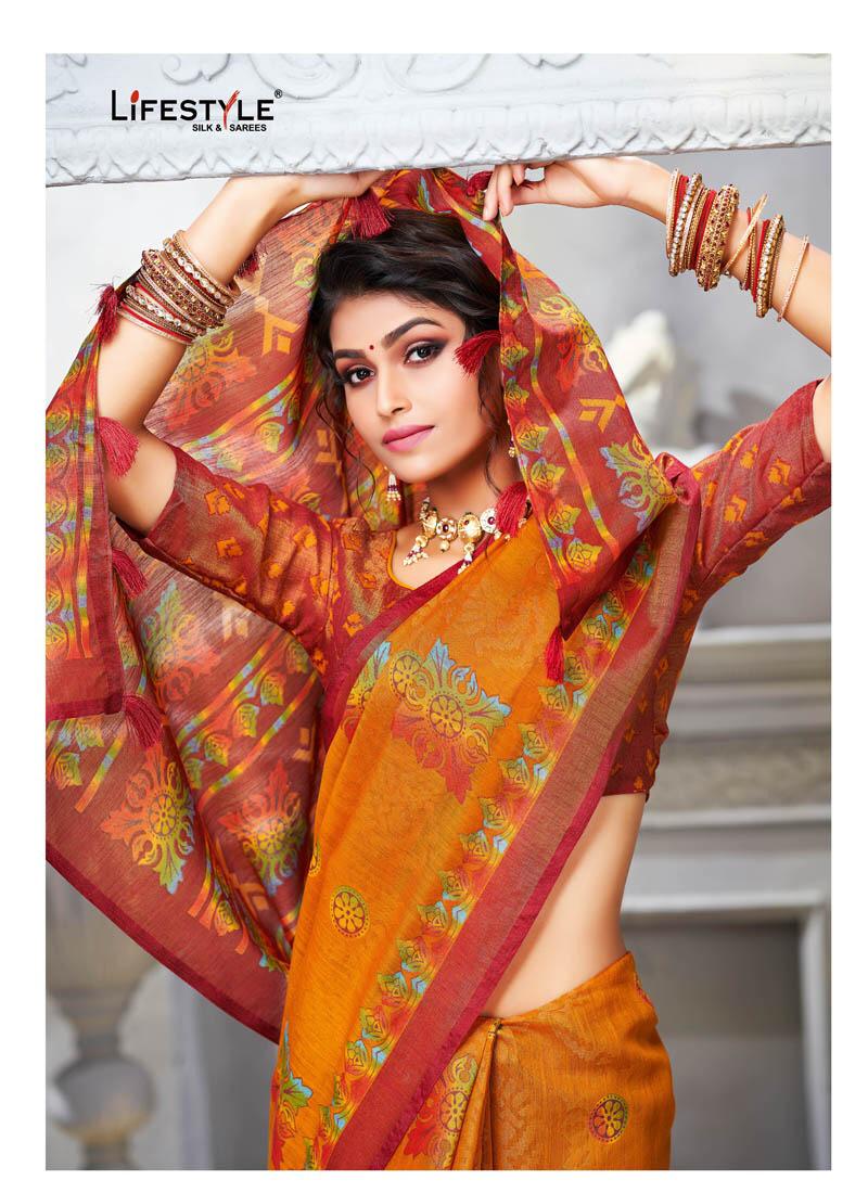 Lifestyle Presents Cotton Club 74321 - 74330 Series Cotton Brasso With Printed Patta Beautiful Designer Event Wear Saree Collection