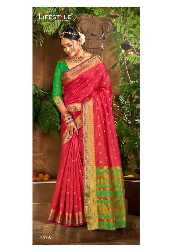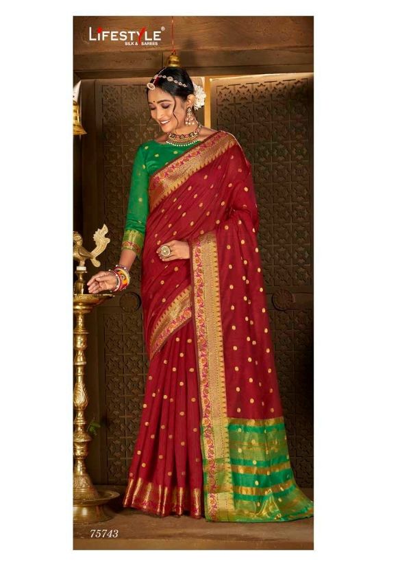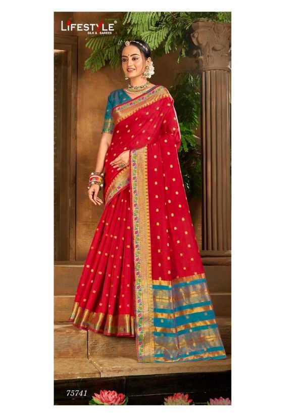 Lifestyle Presents House Full 75741 - 75746 Series Fancy Designer Chanderi Silk With Attractive Work Fancy Saree Collection