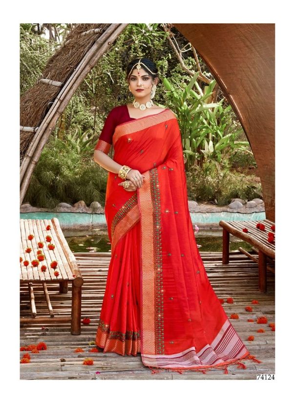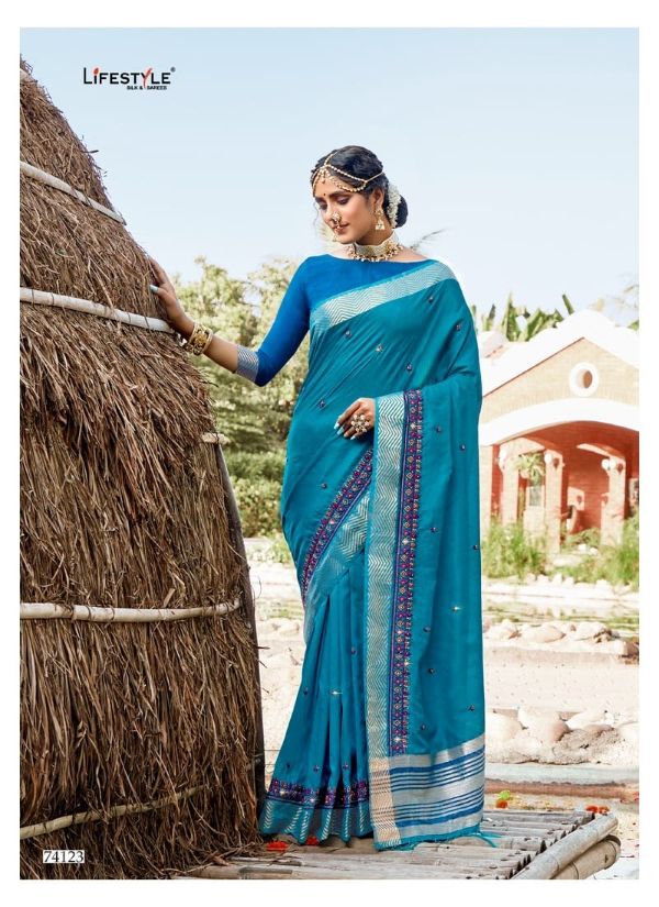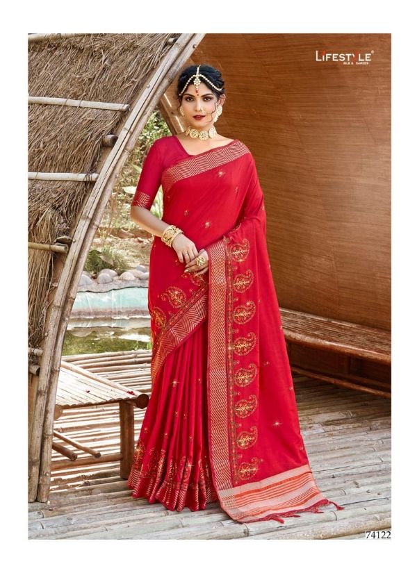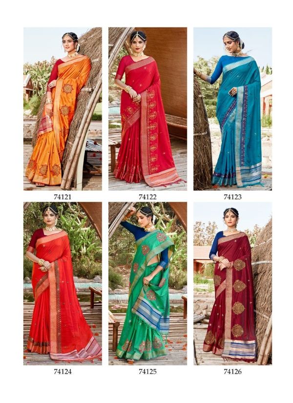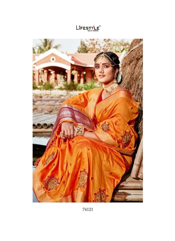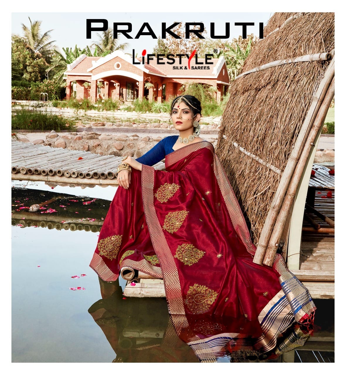 Lifestyle Presents Prakruti 74121 - 74126 Series Crystal Silk With Fancy Embroidery Work Fancy Saree Collection