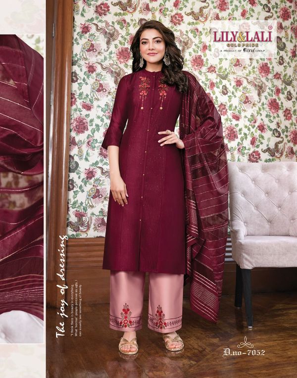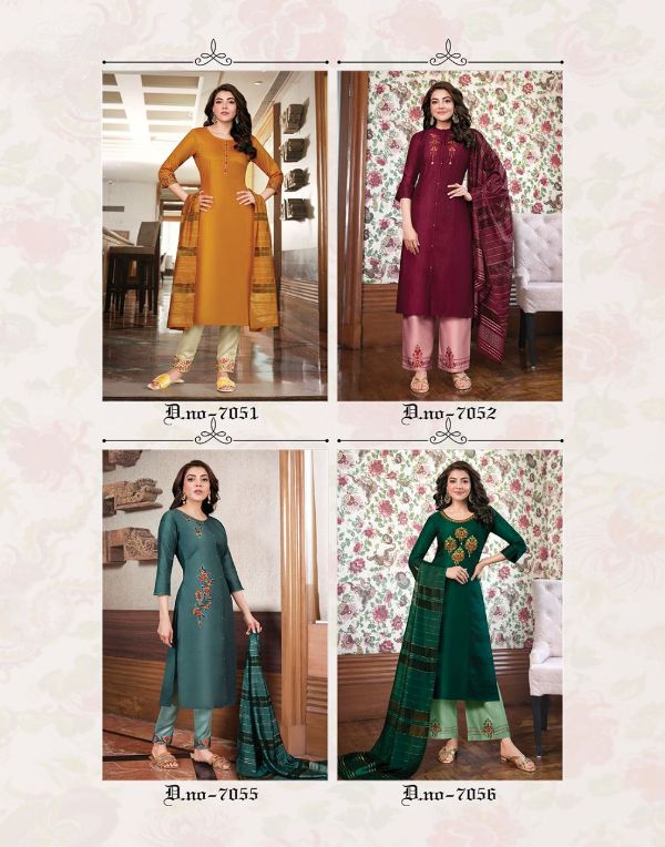 Lily And Lali Presents Mastani 7051-7058 Series Heavy Handwork On Bemberg Silk With Exclusive Crochet Work Salwar Suit Collection
