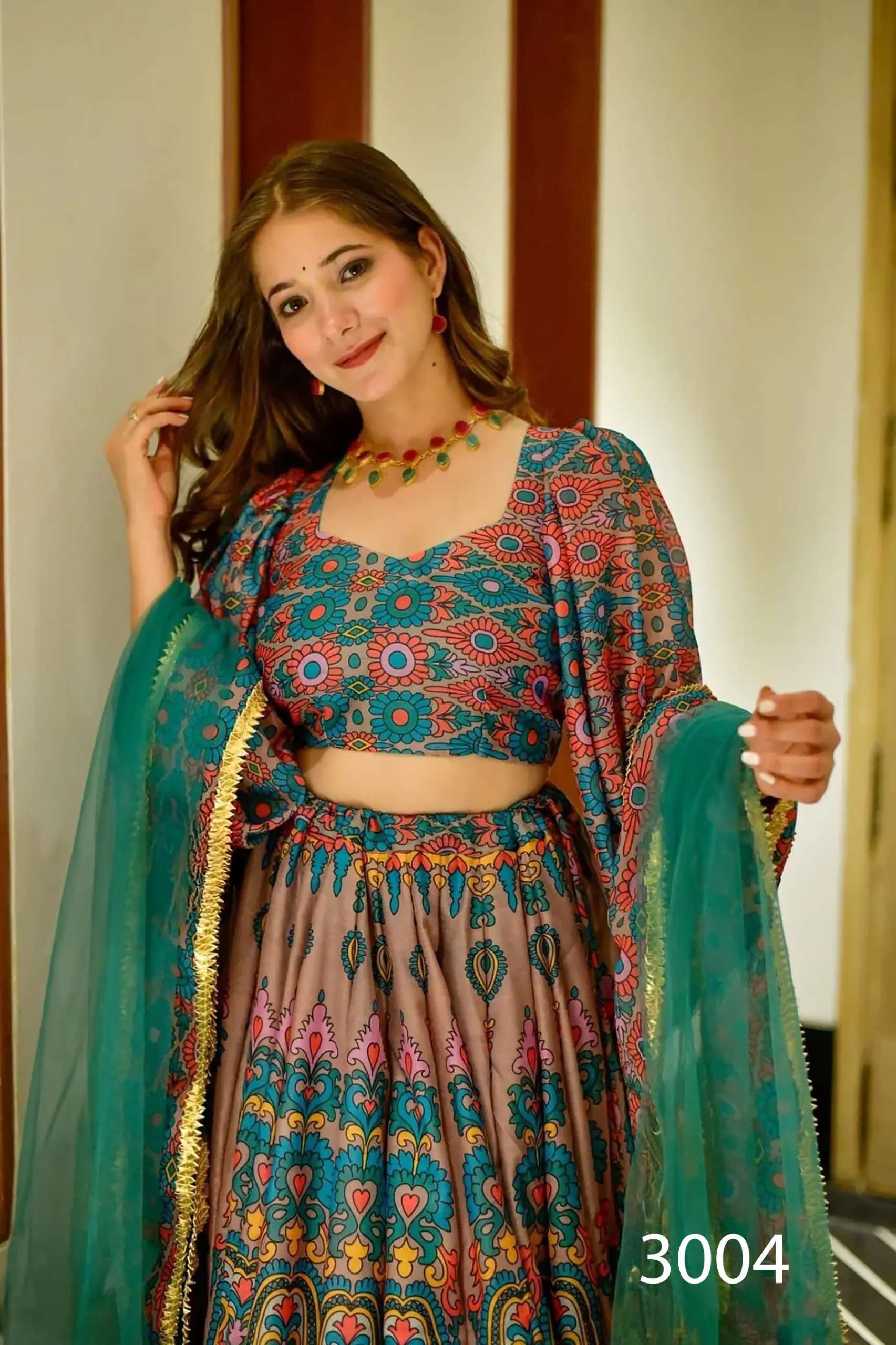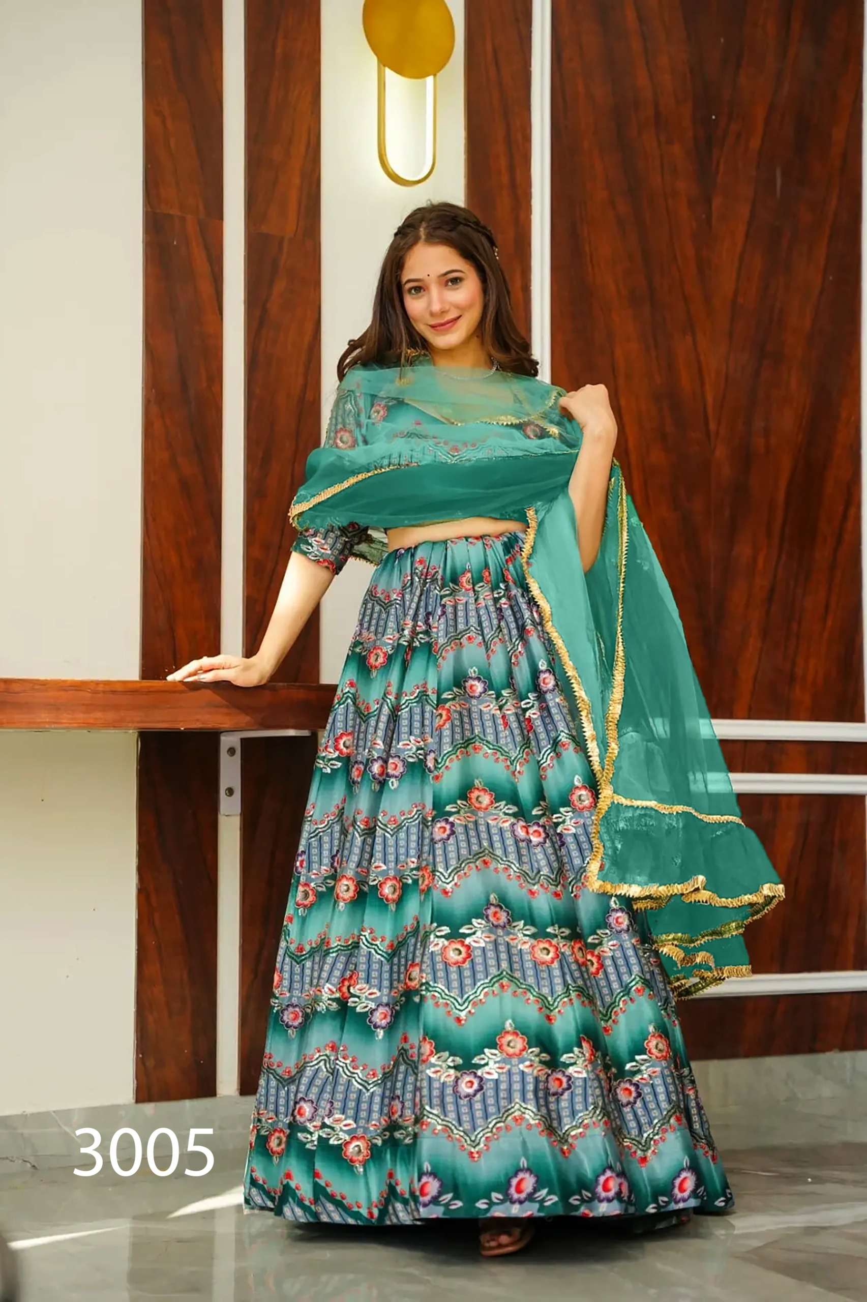 Introducing this stunning 3-piece printed tier lehenga full stitched collection (set of 5 beautiful design 3001 to 3005)
