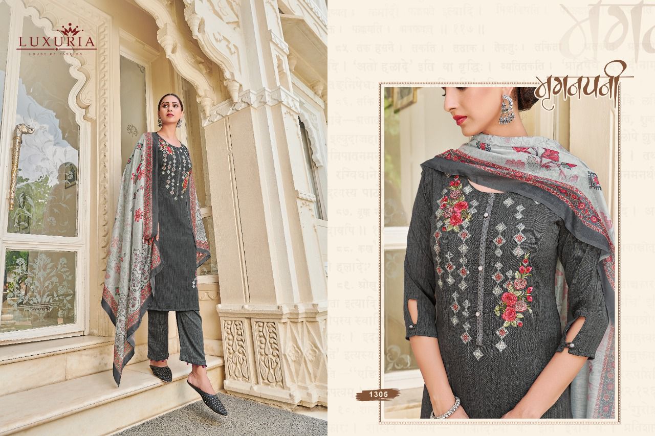 Luxuria Presents Rezza 1301 - 1305 Series Viscose With Fancy Designer Style Work Fancy Casual Wear Salwar Kameez Collection