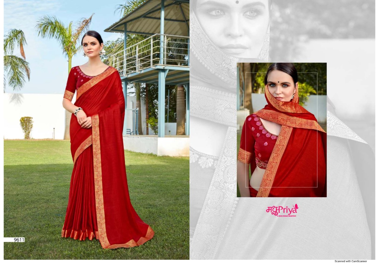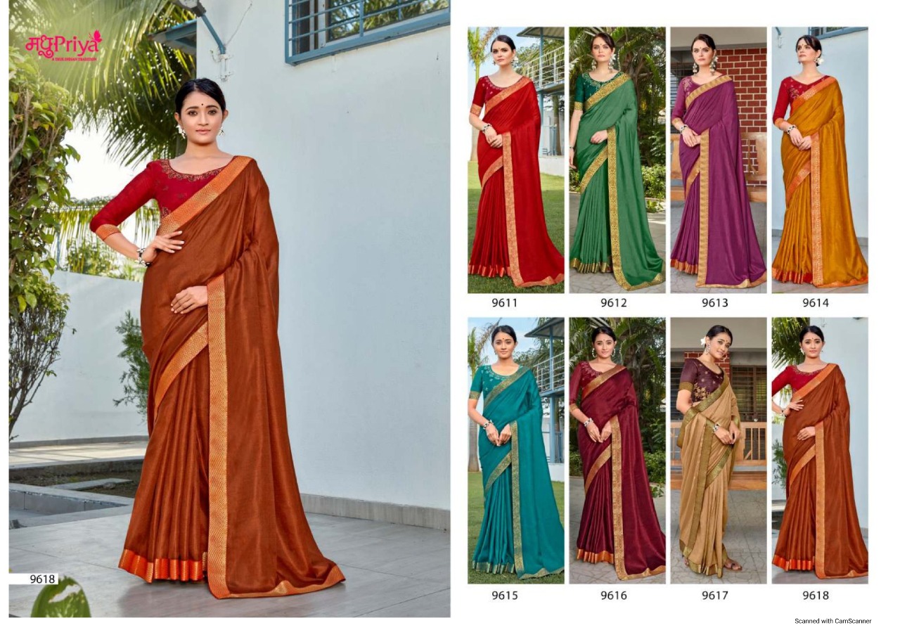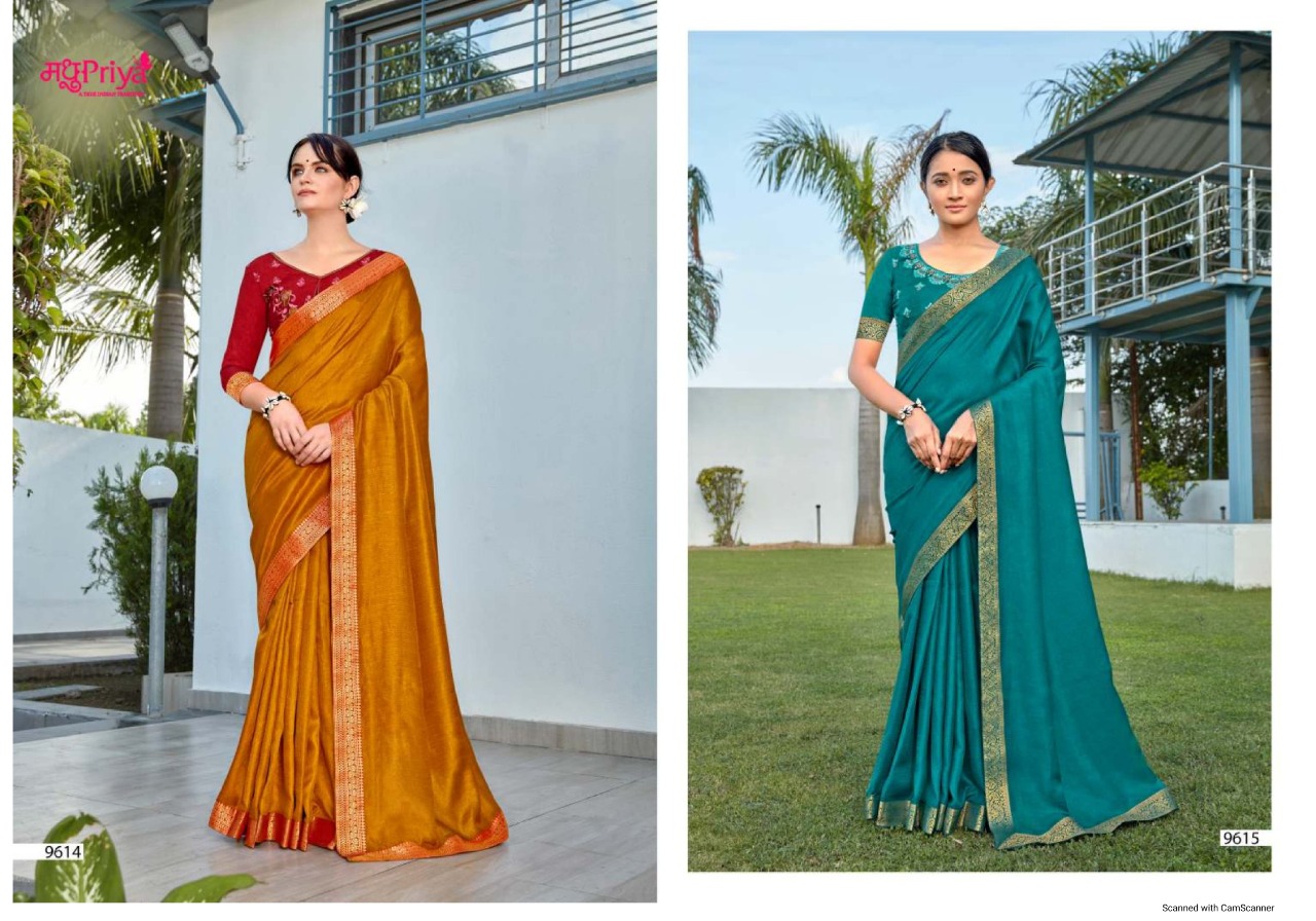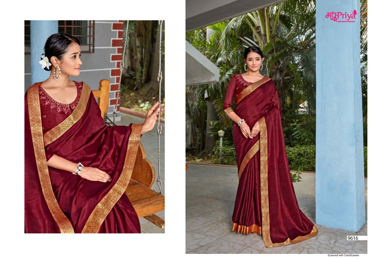 Madhupriya Presents Adhya Vol-2 9611 - 9618 Series Beautiful Vichitra Plus Dola Fancy Function Wear Saree Collection