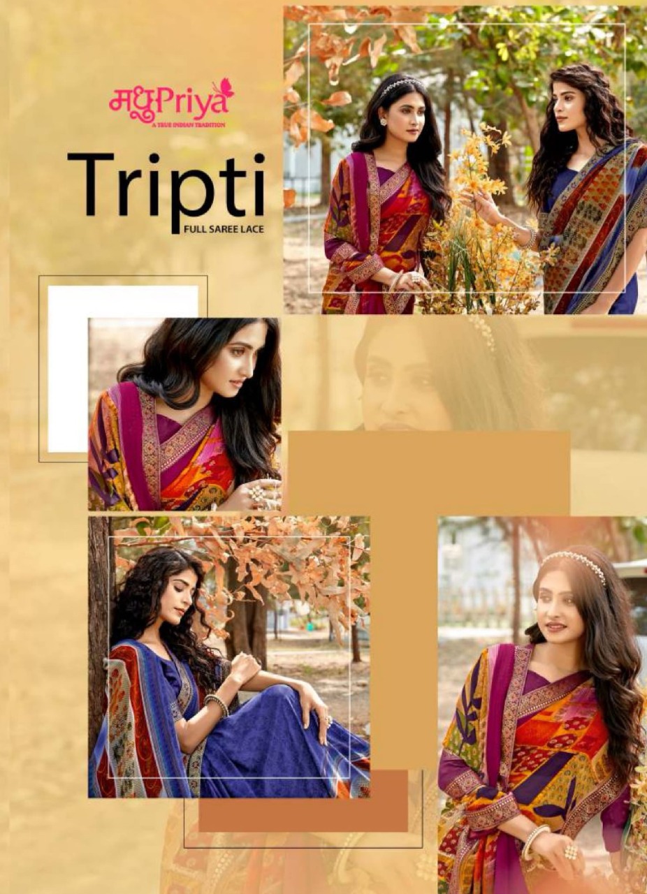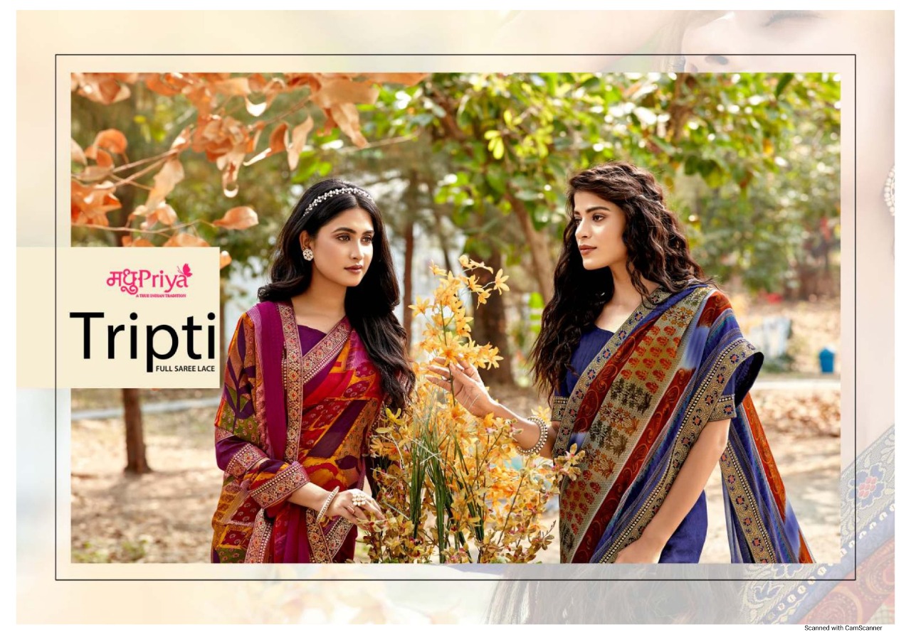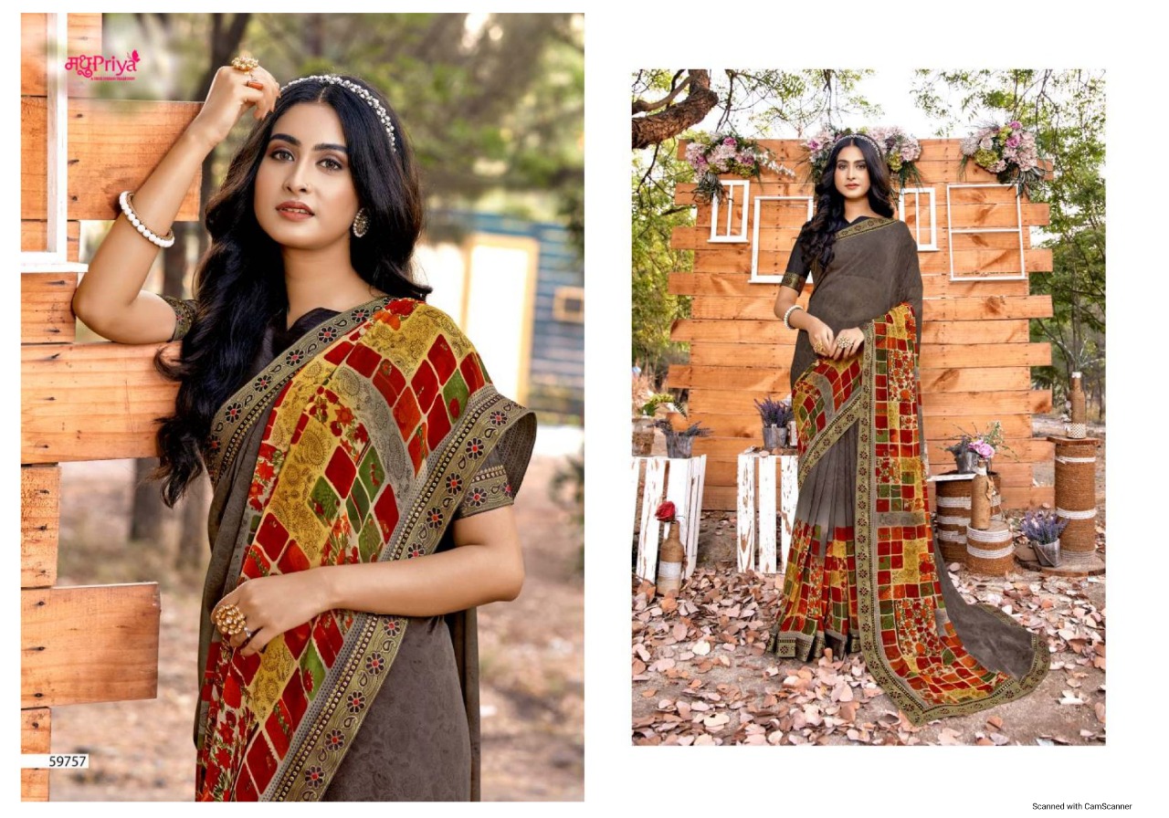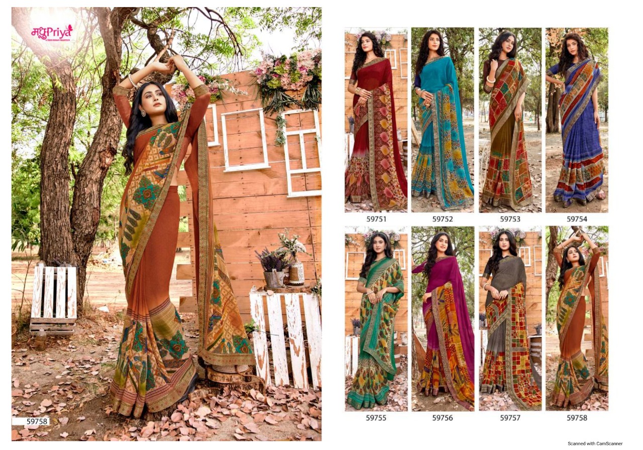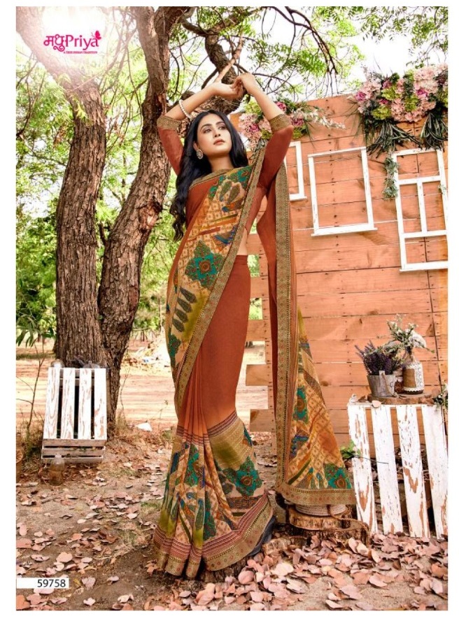 Madhupriya Presents Tripti 59751 - 59758 Series Beautiful Weight Less Spray Print Fancy Festiv Wear Saree Collection