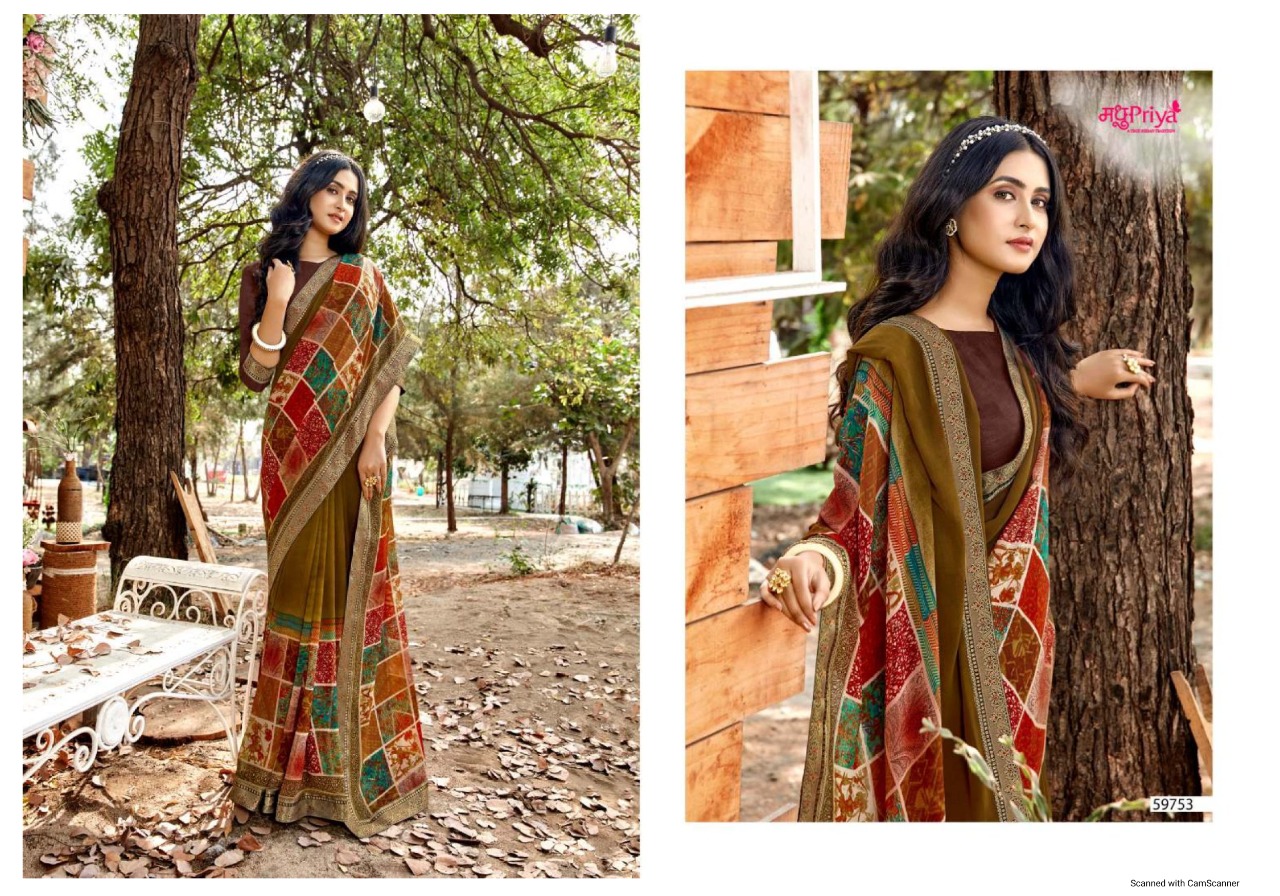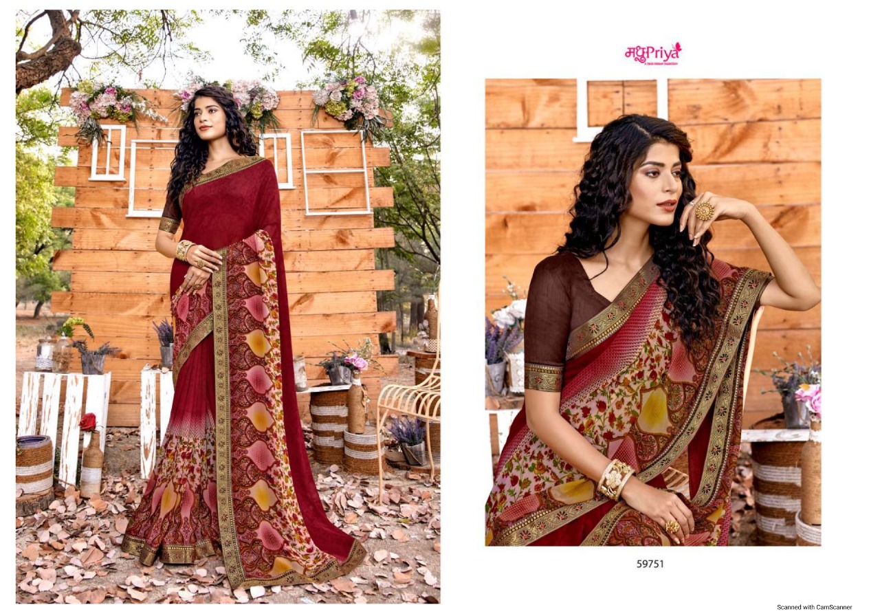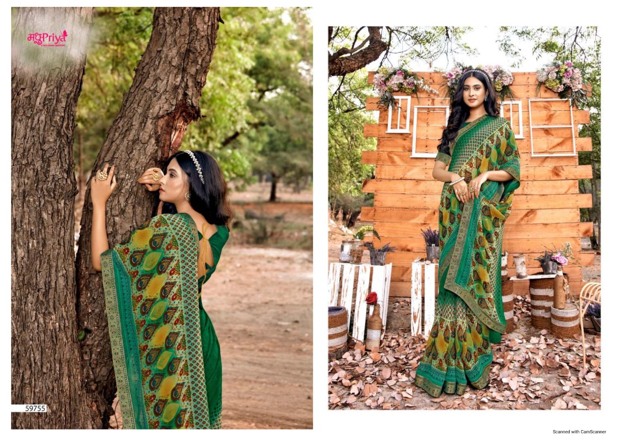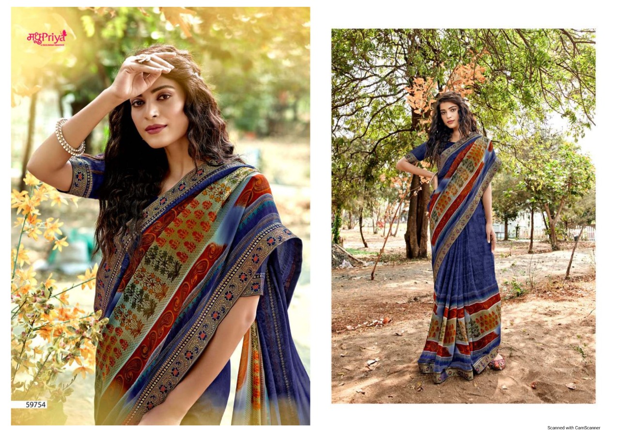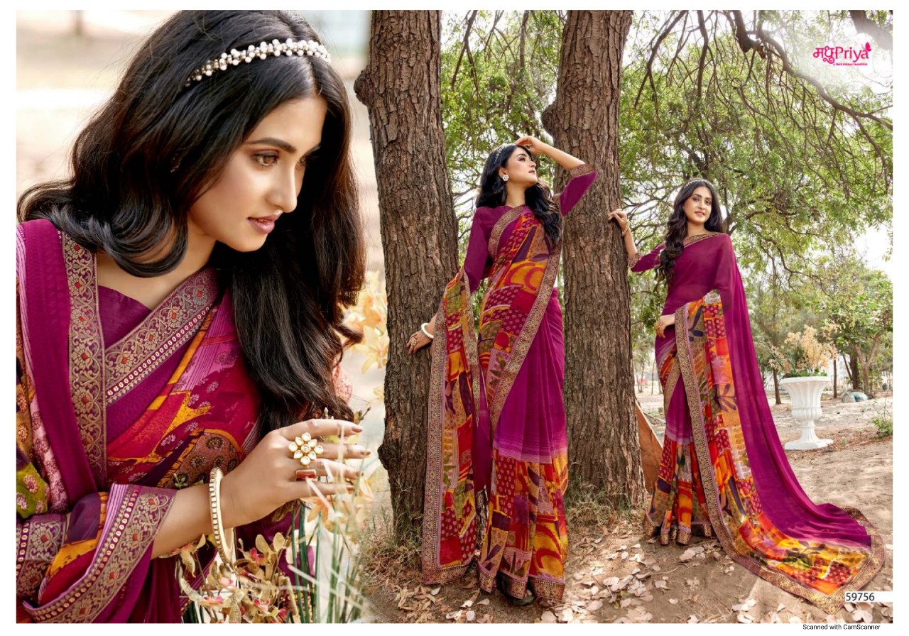 Madhupriya Presents Tripti 59751 - 59758 Series Beautiful Weight Less Spray Print Fancy Festiv Wear Saree Collection