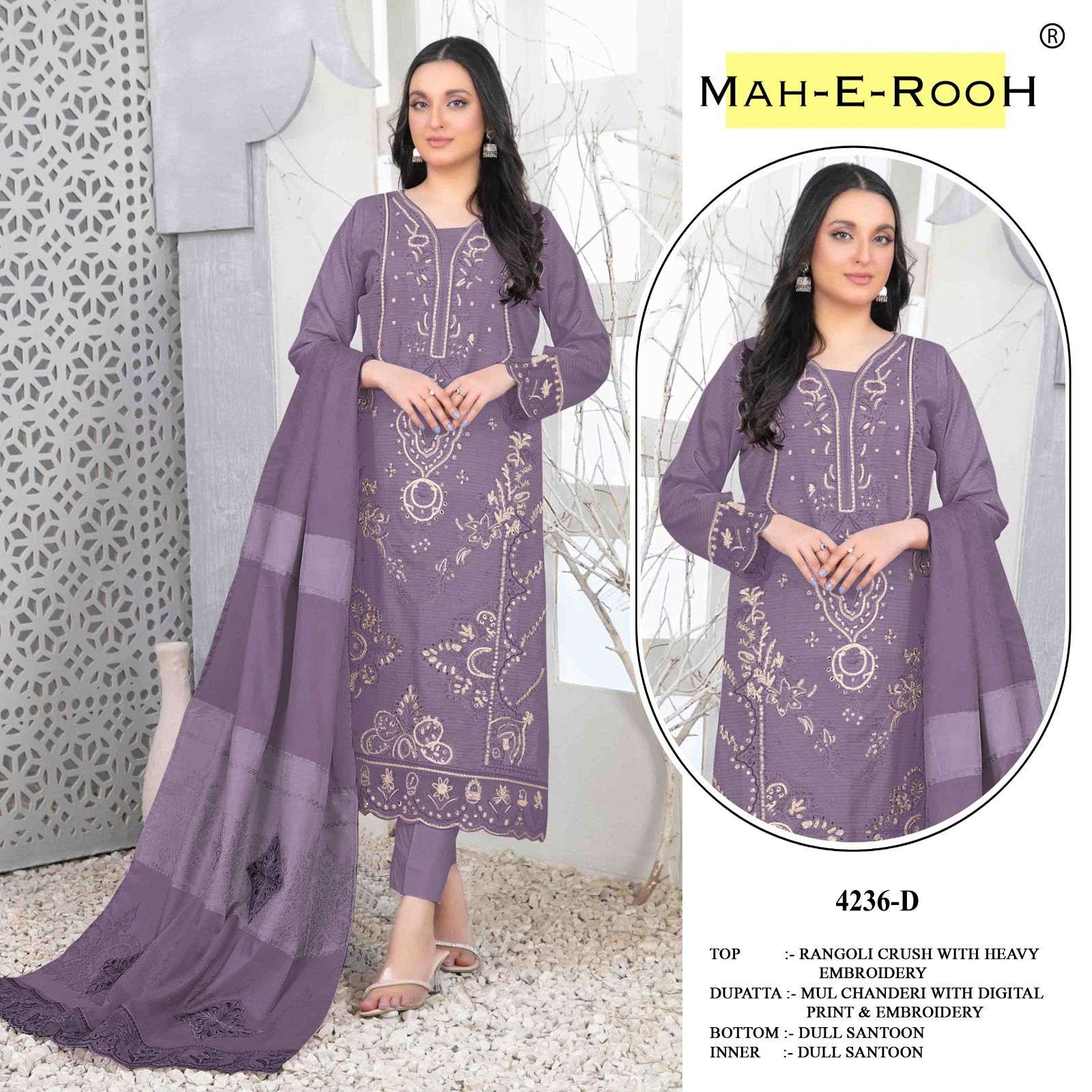 | Catalogue: | MAH E ROOH 4236 Rangoli Crush Sequence & Embroidered Pakistani Suit |
