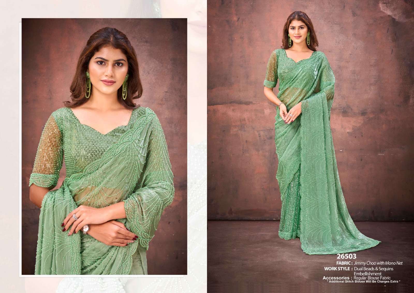 | Work : | handwork,sequence work,embellished work |