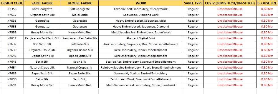 Type: | Designer Sarees, Multi Fabrics, PartyWear, Wedding Wear Sarees |