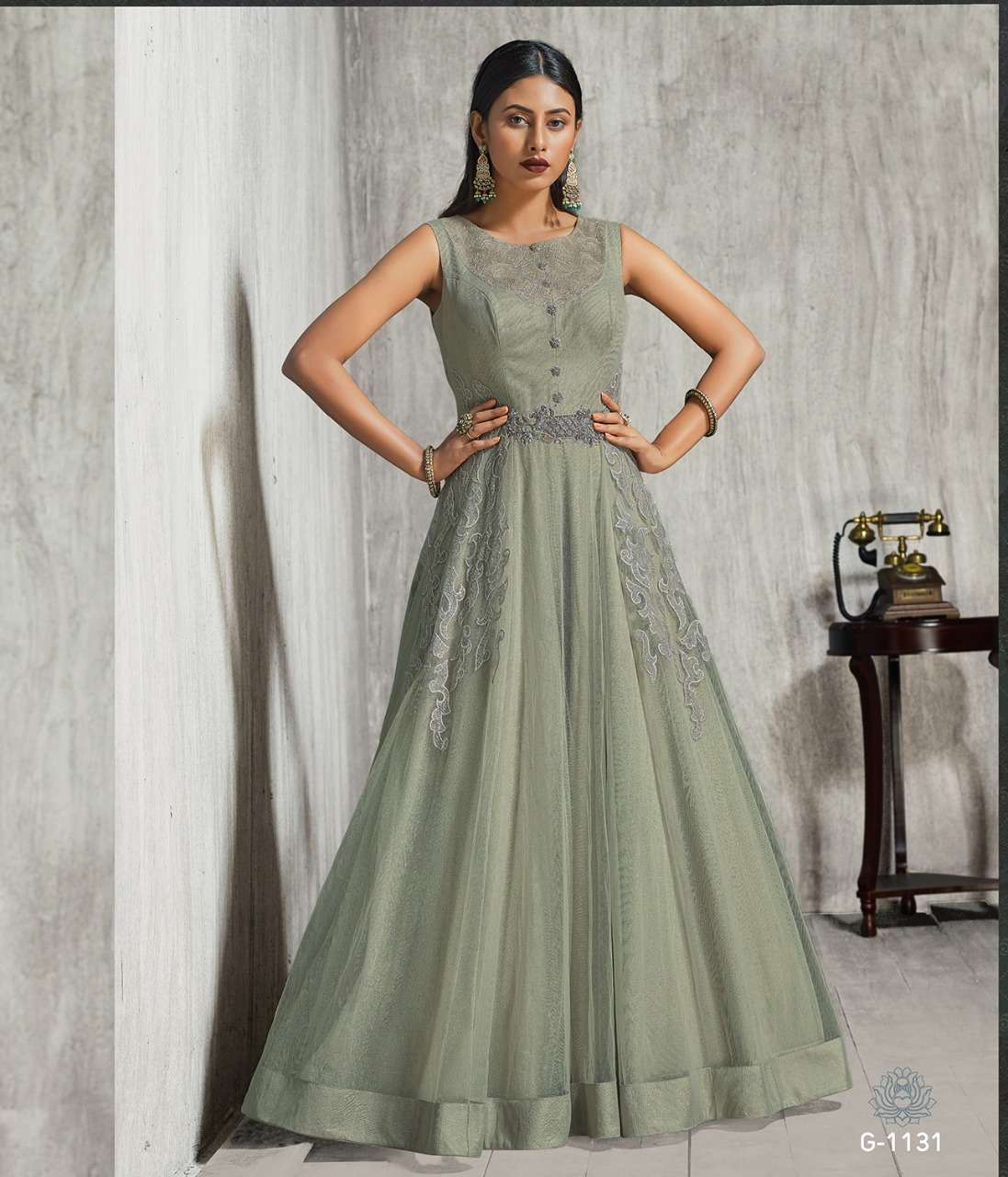 Latest Designer Gown Collection. Exclusive with Embroidery Work gives a Fashionable Look, High sensed style and luxury makes you ready for envious glazes and very rich & Royal in the Party, Function, Event etc.