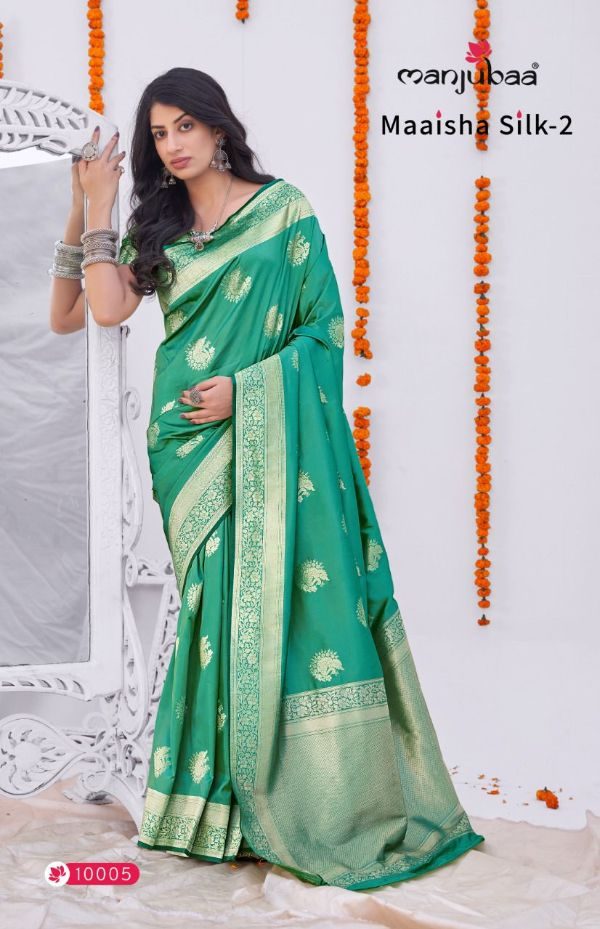 Manjubaa Presents Maaisha Silk Vol-2 10001 - 1009 Series Designer Party Wear Indian Banarsi Silk Saree At Wholesale Price