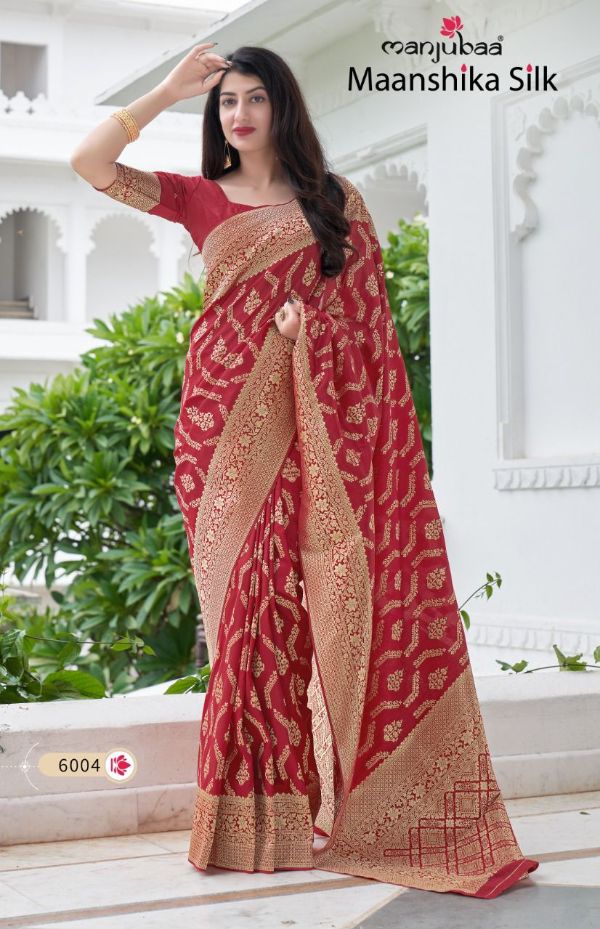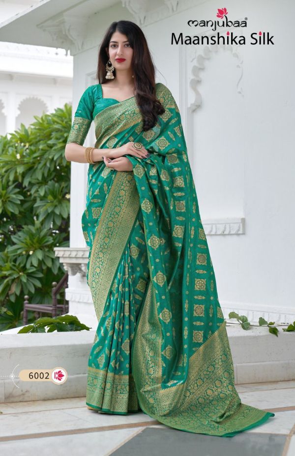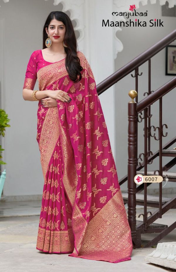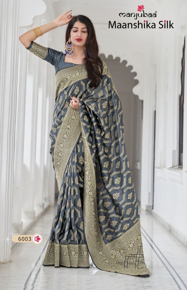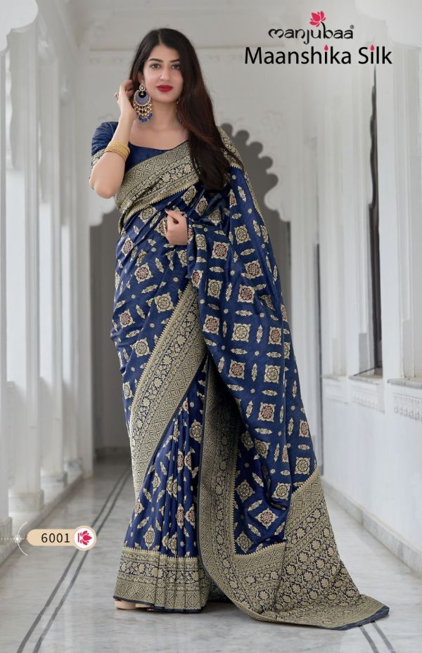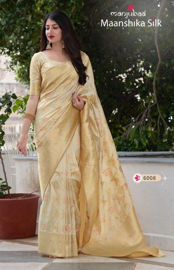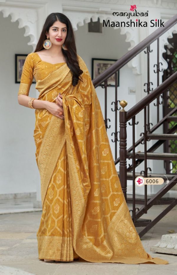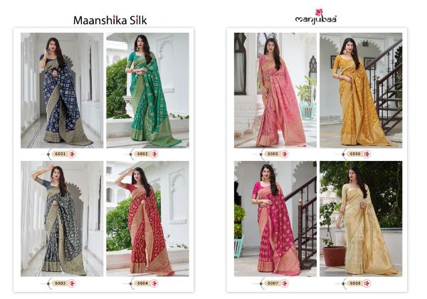 Manjubaa Presents Maanshika Silk 6001 - 6008 Series Beautiful Banarasi Art Silk Fancy Saree Collection