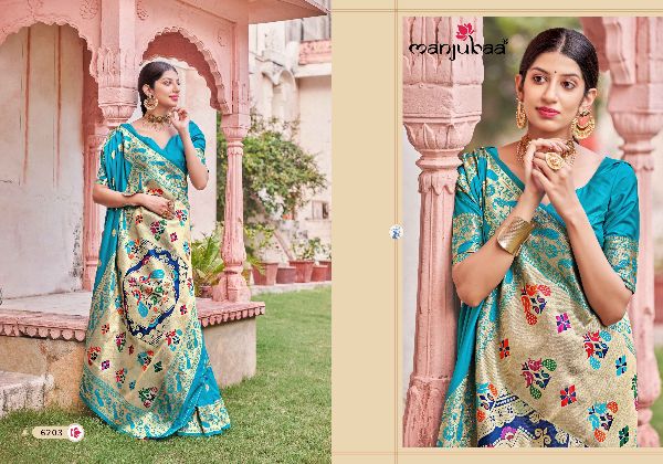 Manjubaa Presents Madhuri Paithani 6201-6208 Series Banarasi Silk Saree Collection#1571