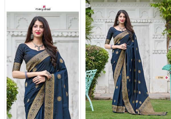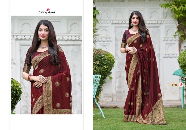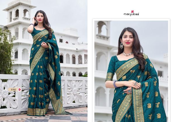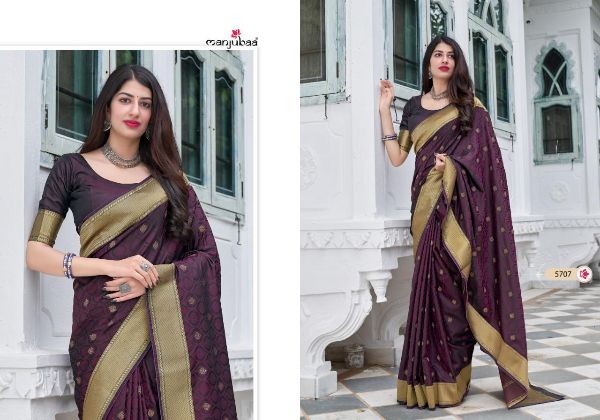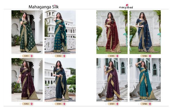Catalogue: Manjubaa Presents Mahaganga Silk 5701-5708 Series Soft Satin Silk Saree Collection#17891