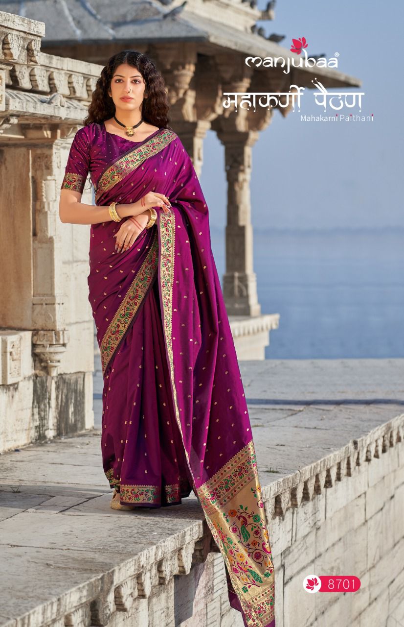Manjubaa Presents Mahakarni Paithani 8701 - 8706 Series Designer Indian Traditional Banarsi Silk Saree At Wholesale Price