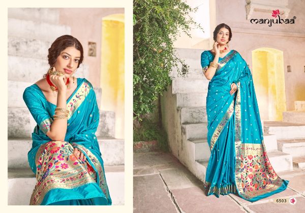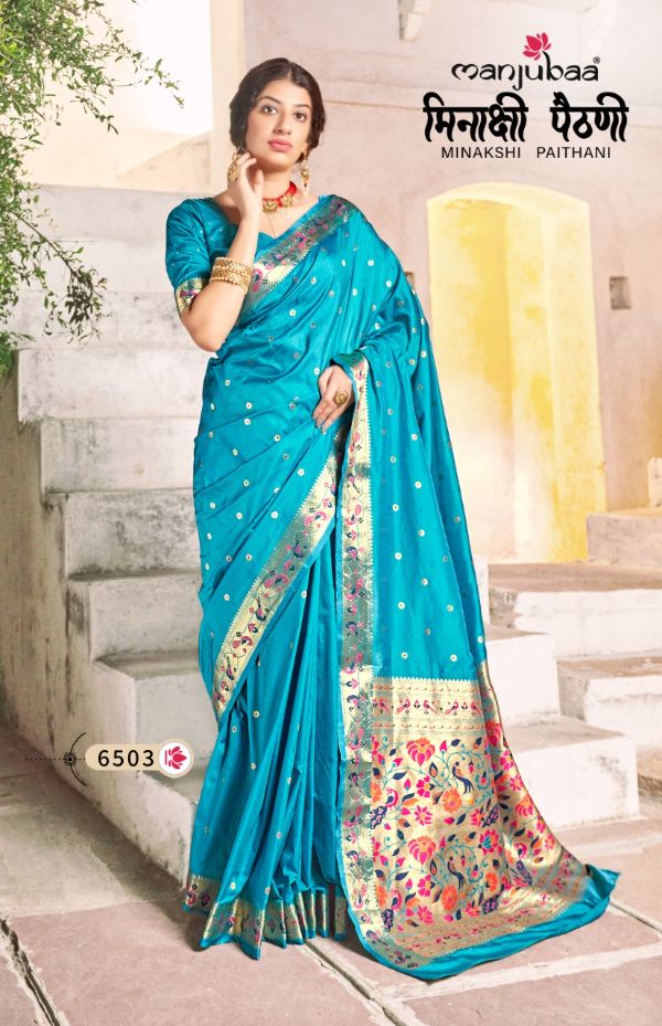 Manjubaa Presents Minakshi Paithani 6501-6506 Series Banarasi Soft Silk Paithani Saree With Zari Border Saree Collection#1636
