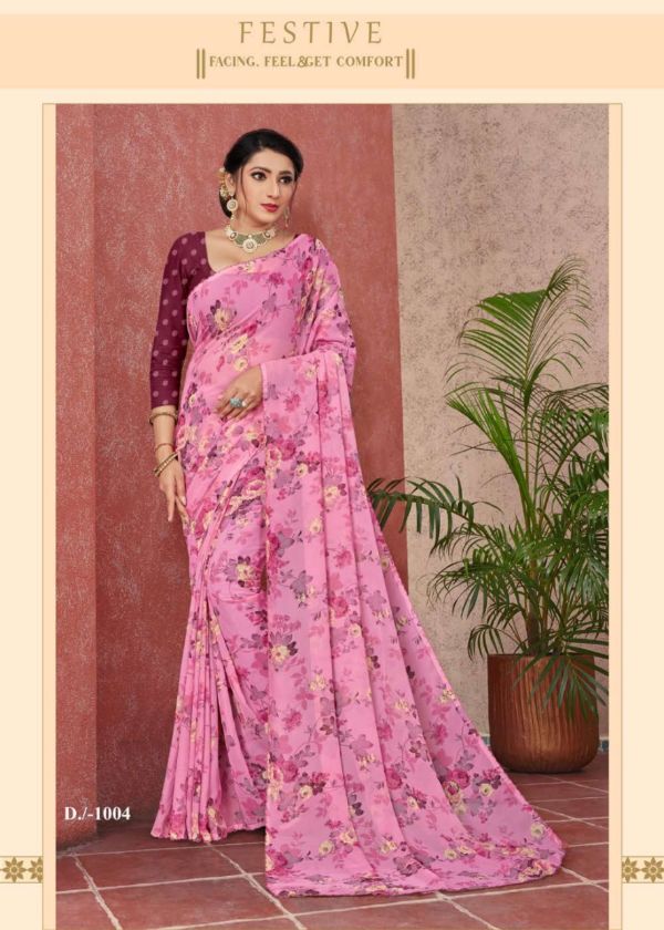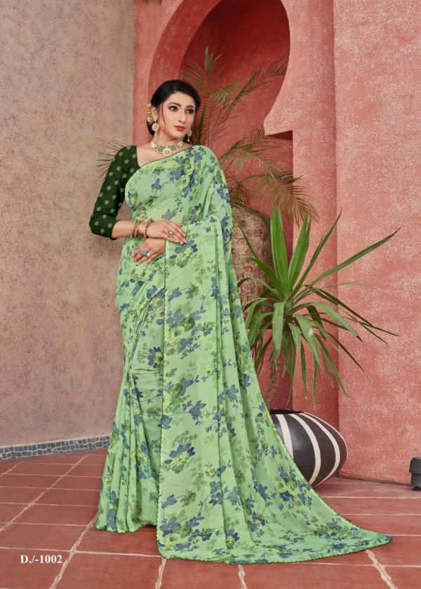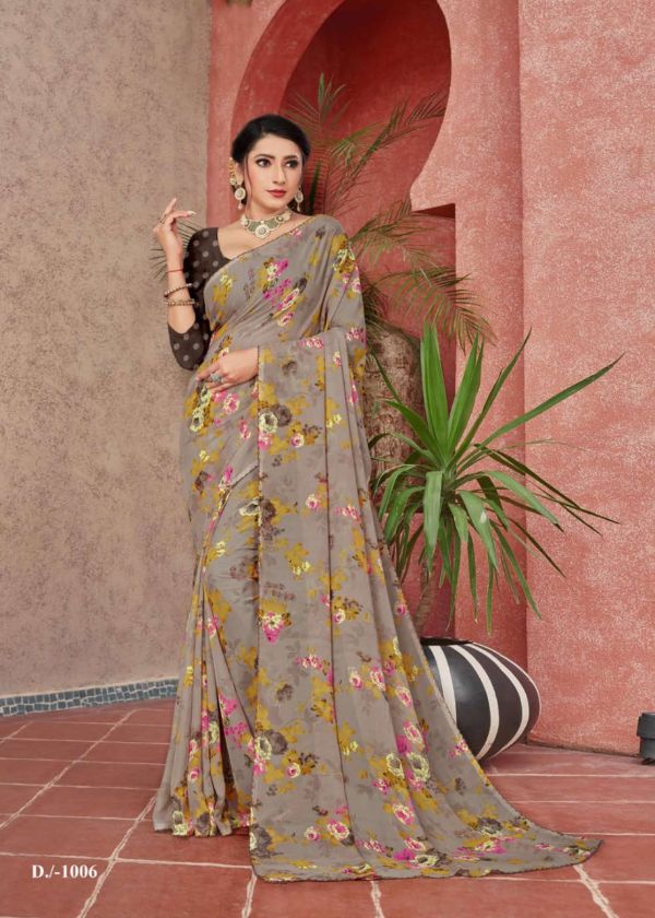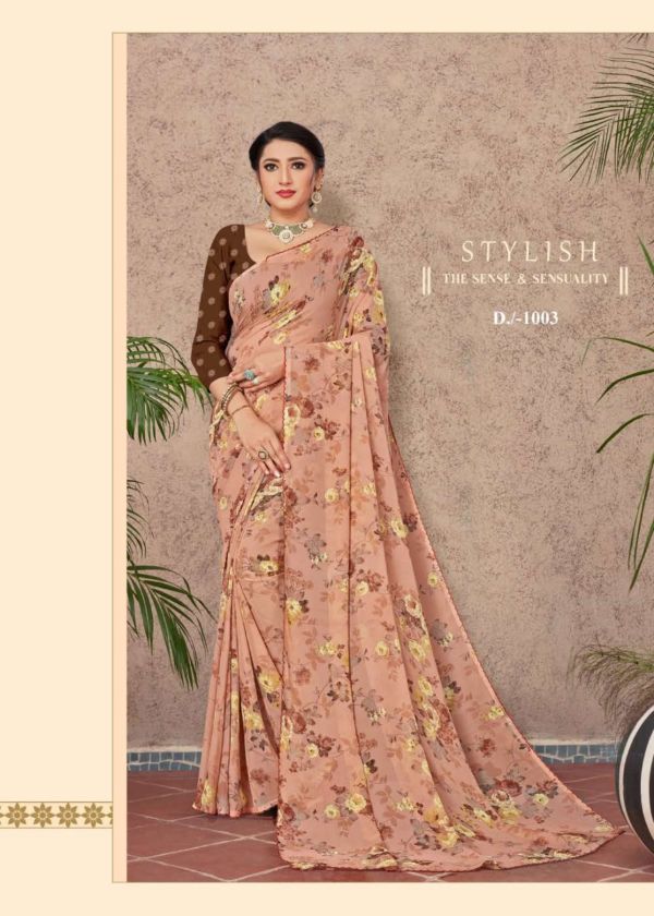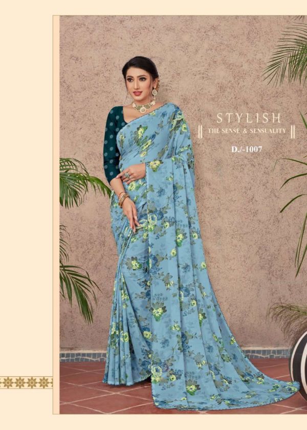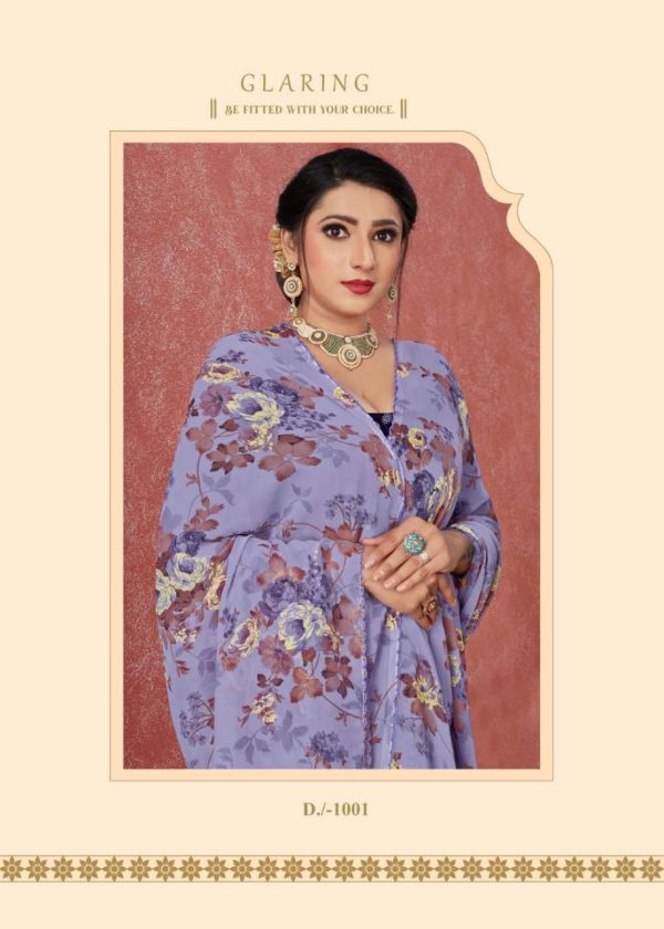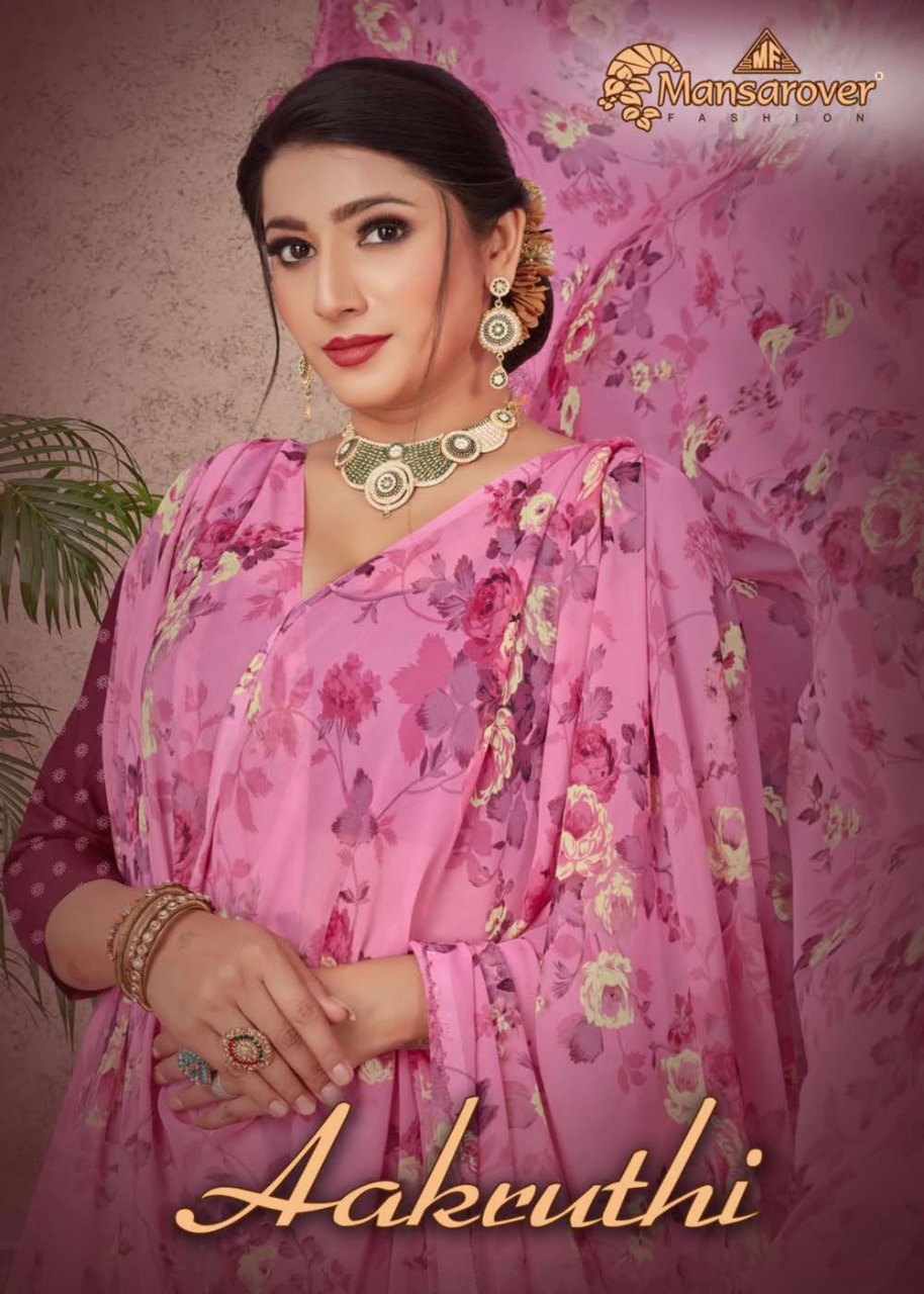 Mansarover Presents Aakruti 1001 - 1008 Series Semi Digital Flower Print Fancy Exclusive Broder Fancy Saree Collection