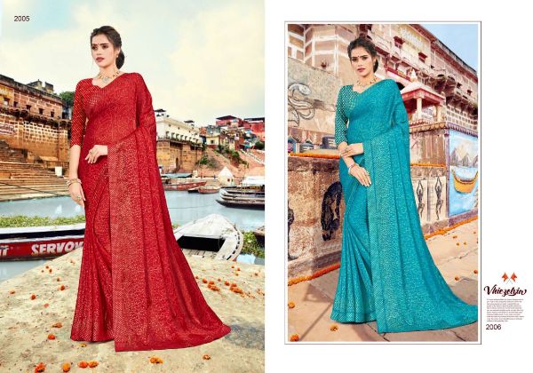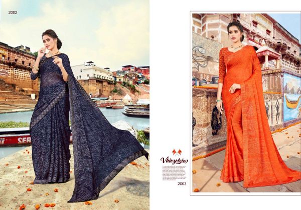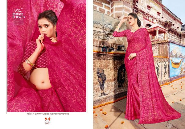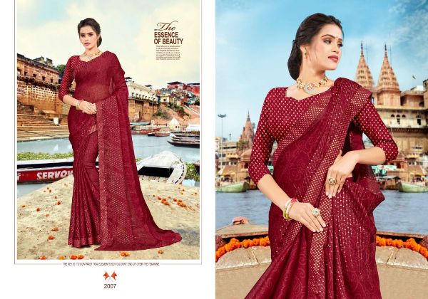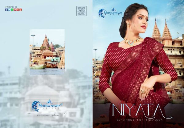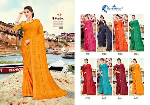 Mansarover Presents Niyata 2001 - 2008 Series Beautiful Moss Chiffon With Foil Print Fancy Saree Collection