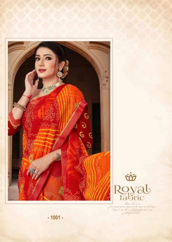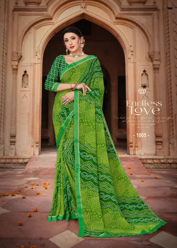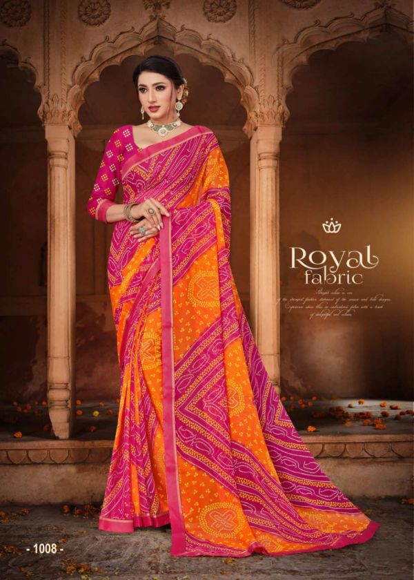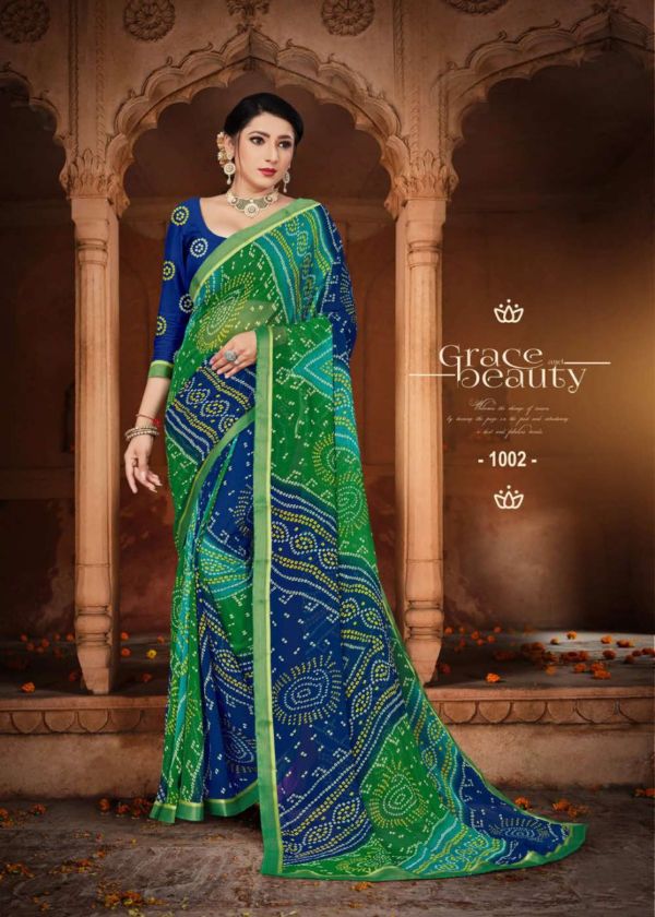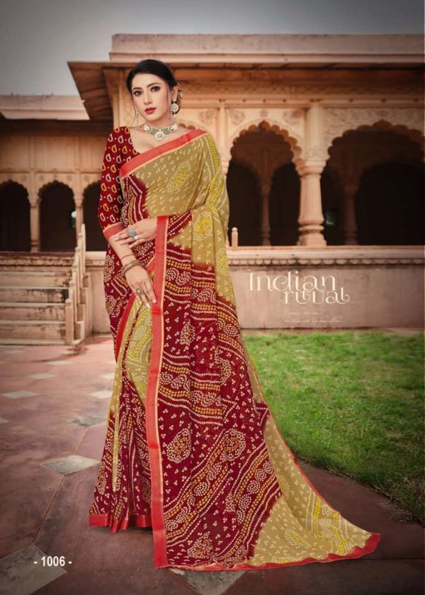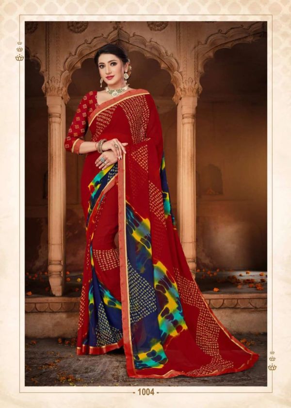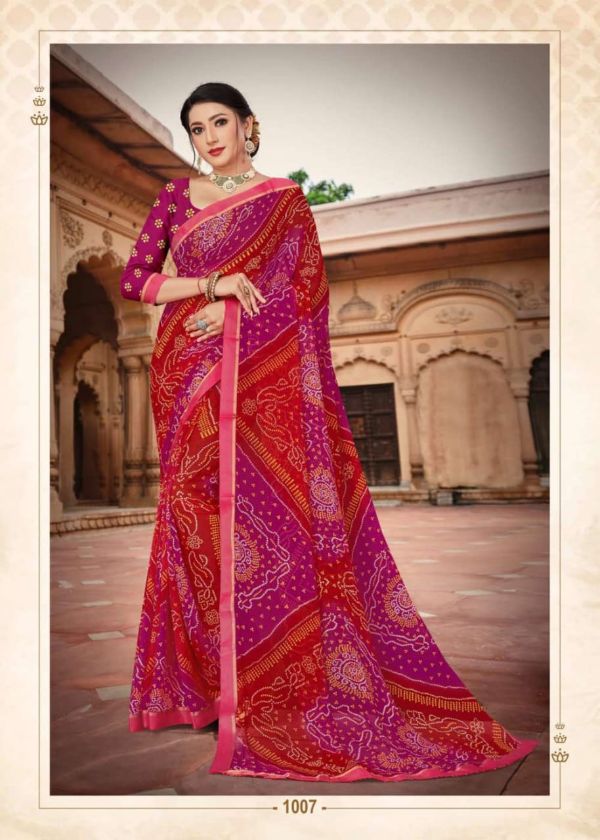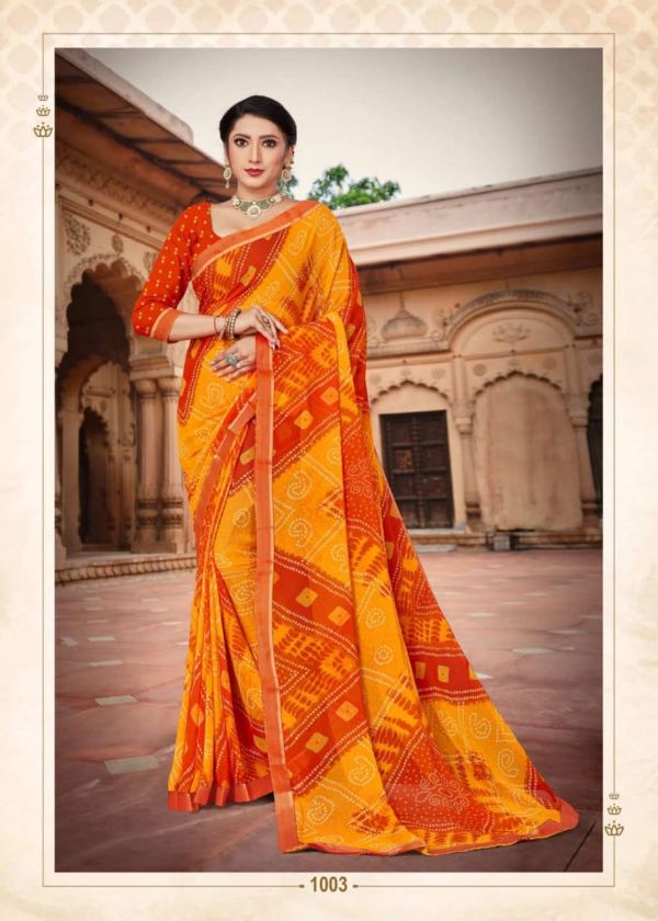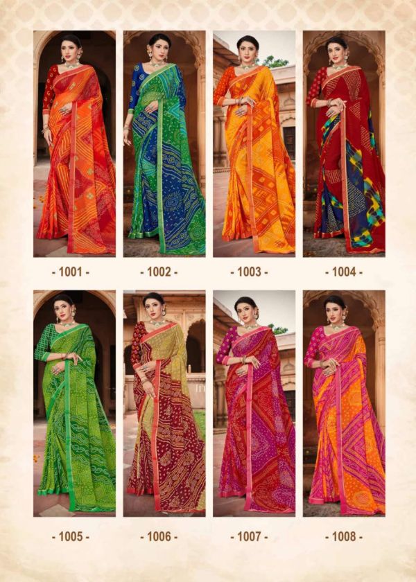 Mansarover Presents Sugandha 1001 - 1008 Series Semi Weightless Bandhani Print With Exclusive Broder Fancy Saree Collection