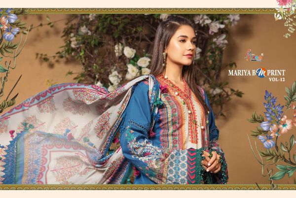 Mariab M Print Vol-12 2073-2080 Series Pure Cotton With Exclusive Emroidery Pakistani Suit Collection