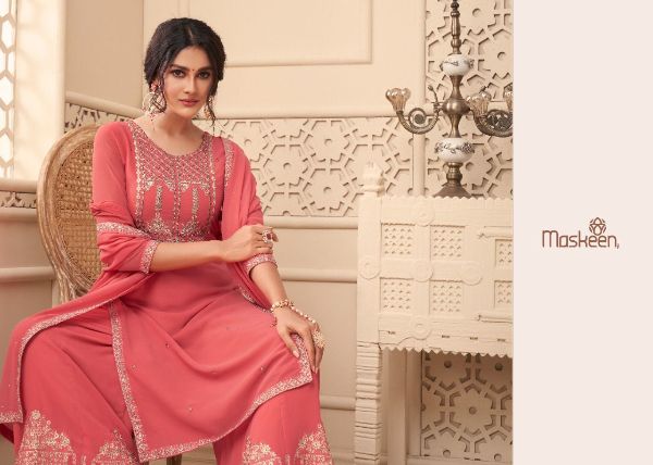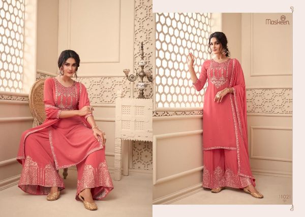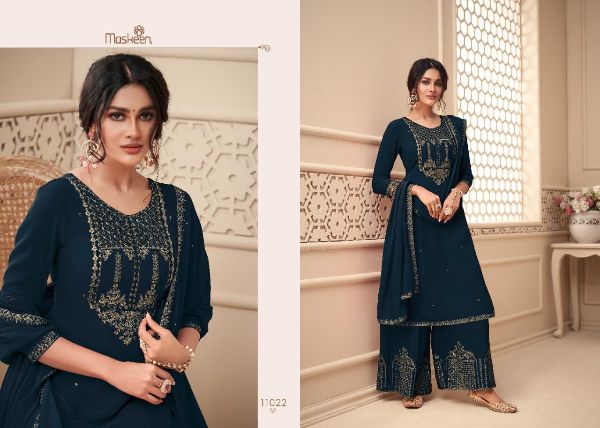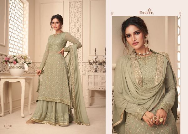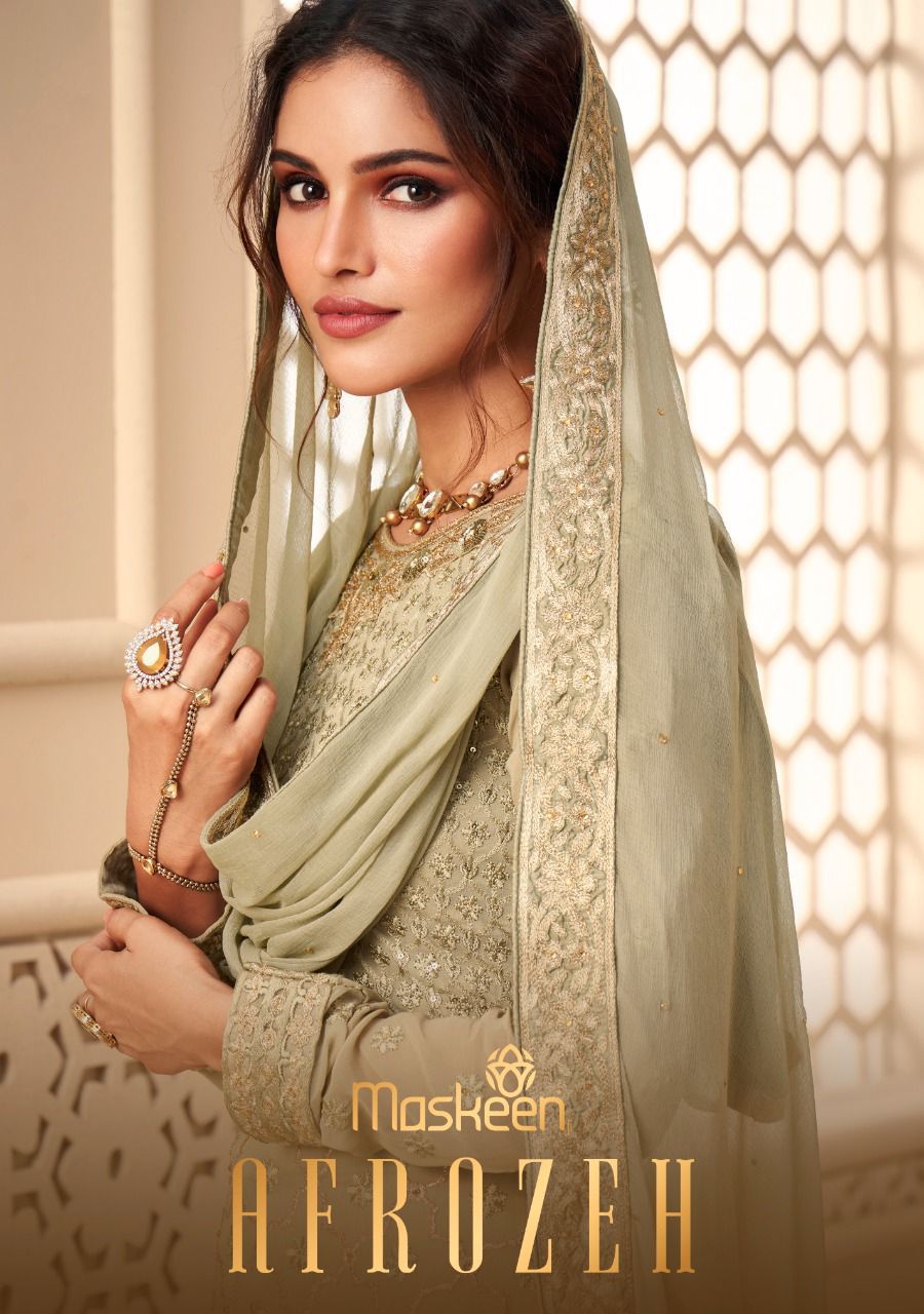 Maskeen Presents Afrozeh 11017 - 11023 Series Premium Georgette With Hand Work And Embroidey Work Fancy Salwar Suit Collection