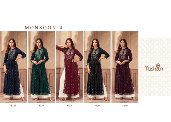 Maskeen Presents Monsoon-4 3236 - 3240 Series Indian Readymade Casual Party Wear Salwar Suit Palzzo At Wholesale Price