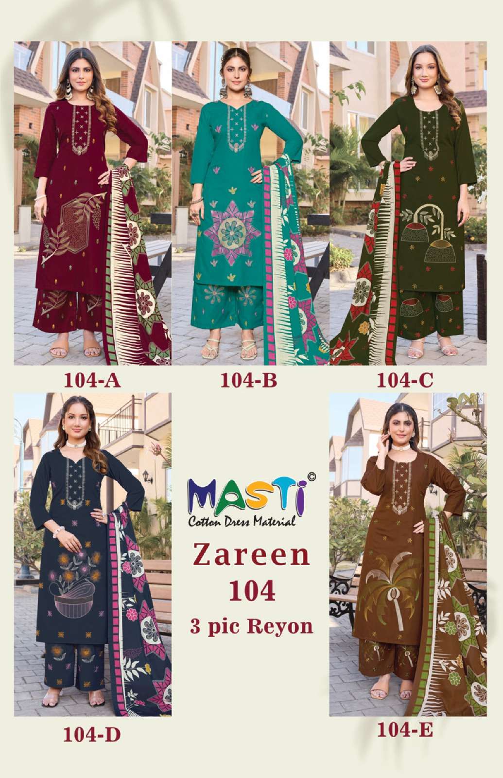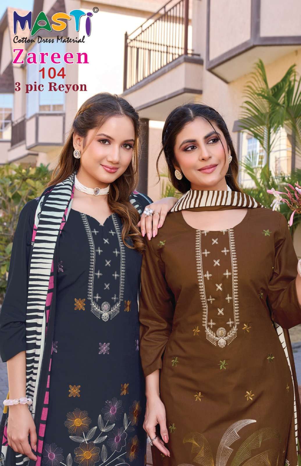 | Catalogue: | MASTI ZAREEN VOL 104 PREMIUM RAYON EMBROIDERED SUIT |