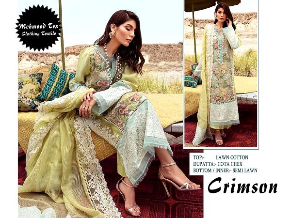 Mehmood Tex Presents Crimson Lawn Cotton With Heavy Self Embroidery Pakistani Collection