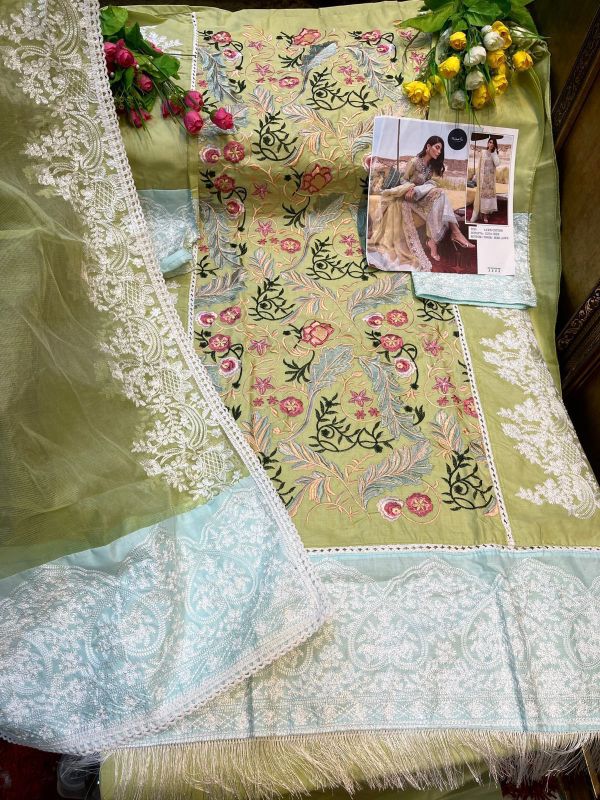 Latest Designer pakistani suits Collection. Exclusive with Foil & Thread Embroidery Work gives a Fashionable Look, High sensed style and luxury makes you ready for envious glazes and very rich & Royal in the Party, Function, Event etc.